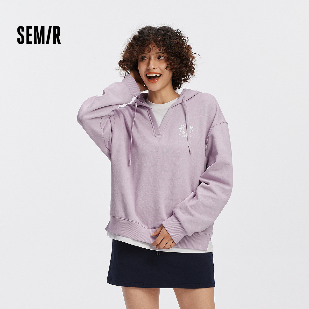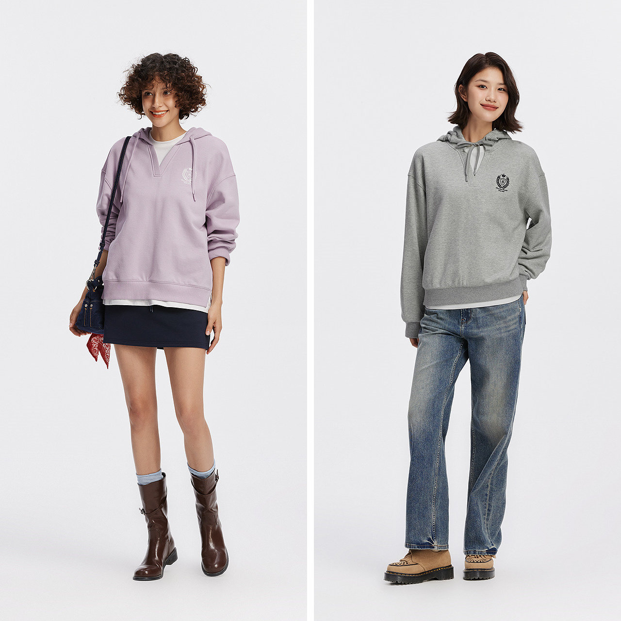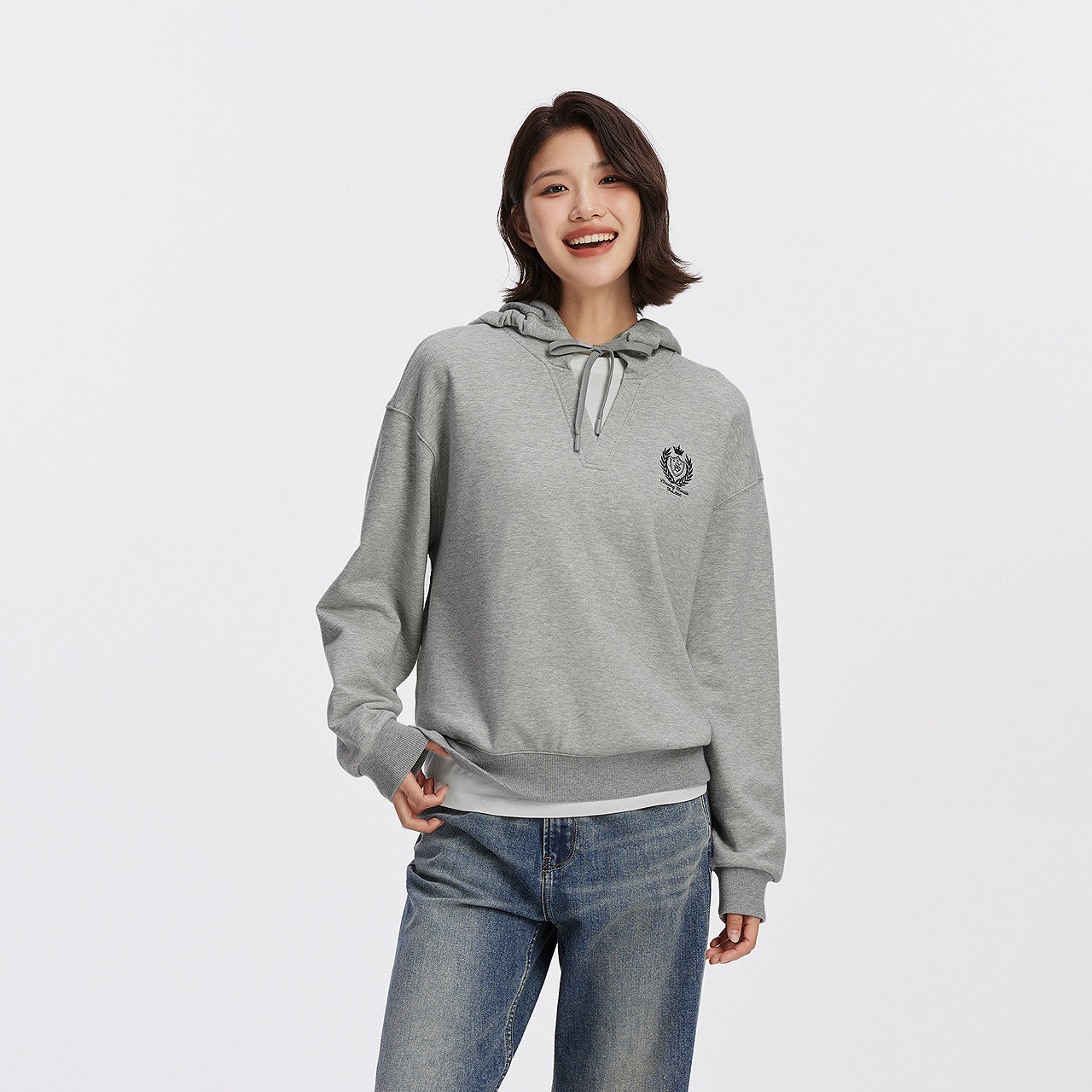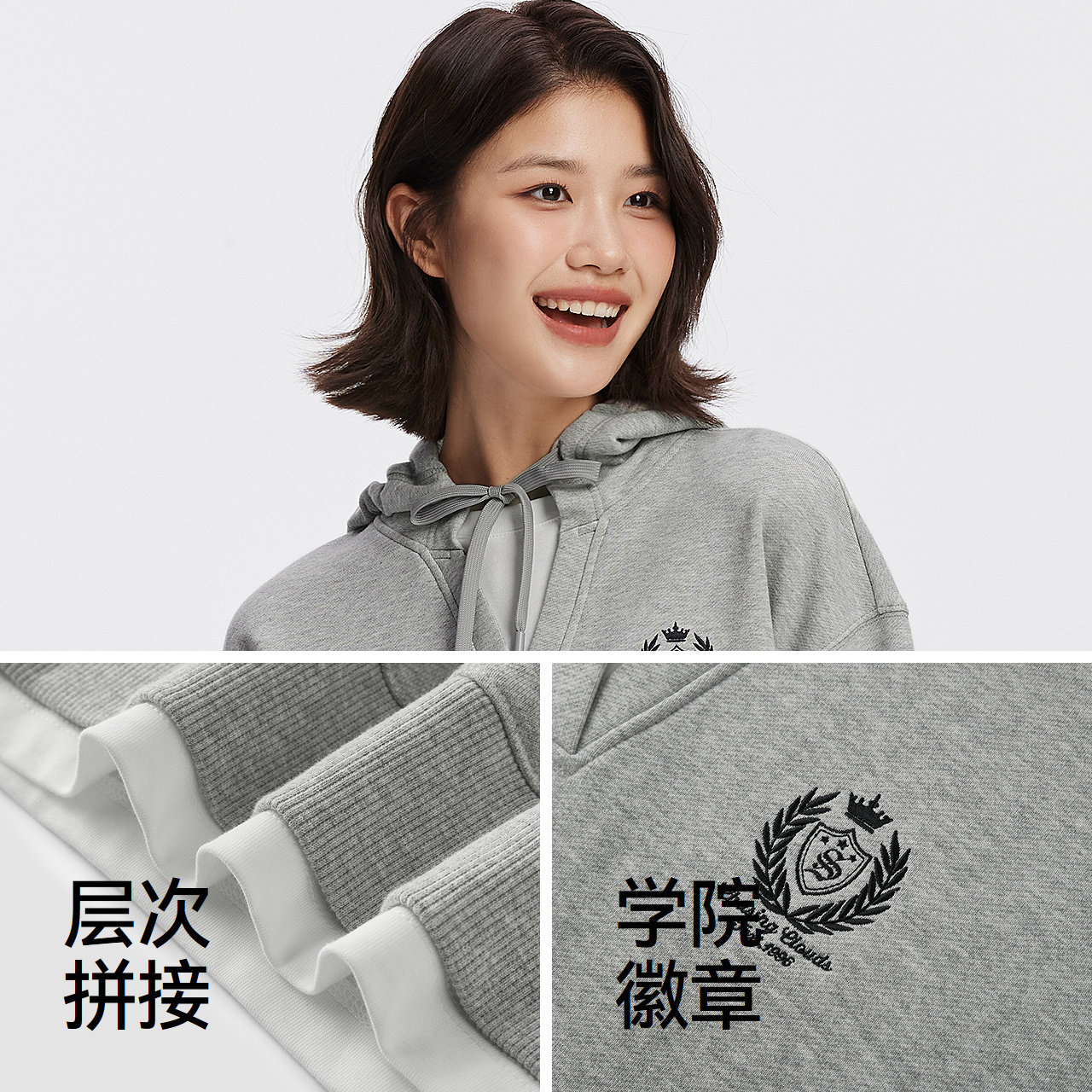 [商场同款]森马卫衣女连帽oversize慵懒2025秋新款刺绣假两件上衣