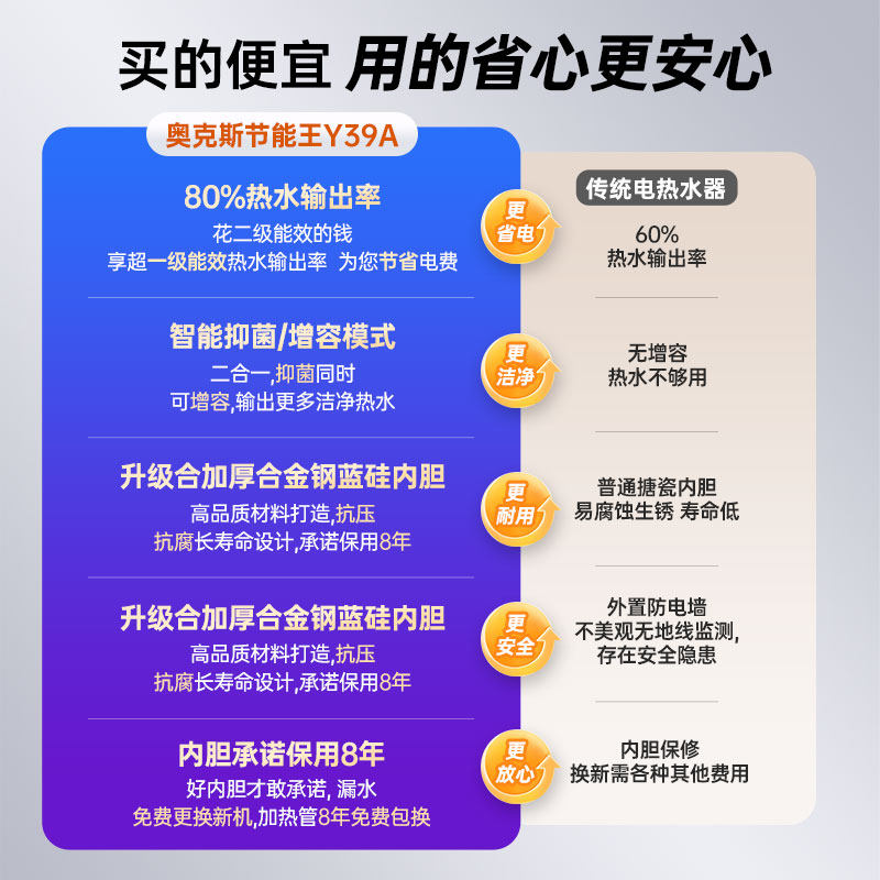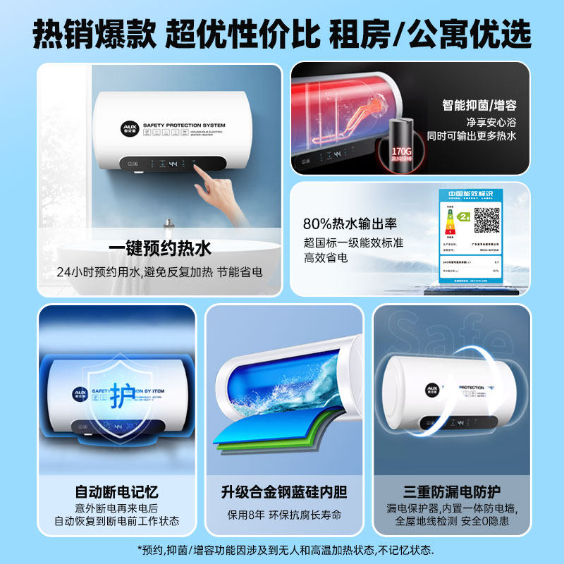 奥克斯电热水器家用卫生间速热储水式小型洗澡出租房50升60升80L