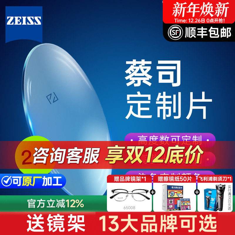 【定制片】蔡司定制泽锐镜片莲花膜A系列铂金膜防蓝光1.74近视镜
