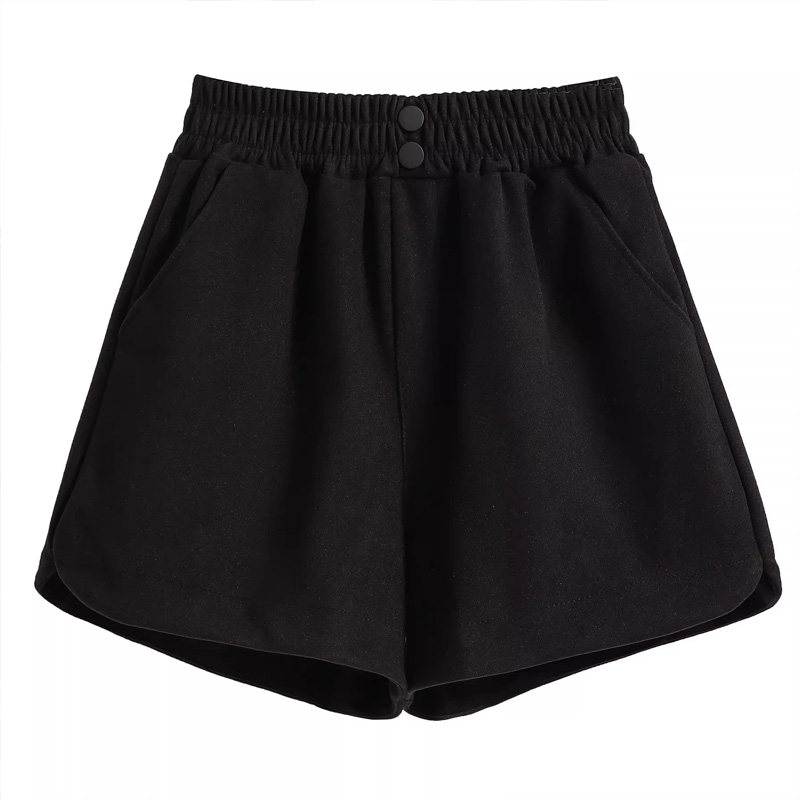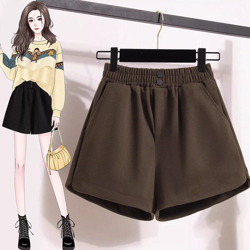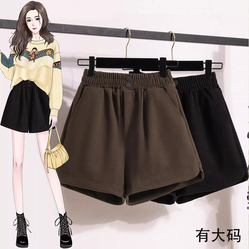 黑色洋气毛呢短裤女春秋冬松紧腰大码小个子a字休闲百搭阔腿靴裤
