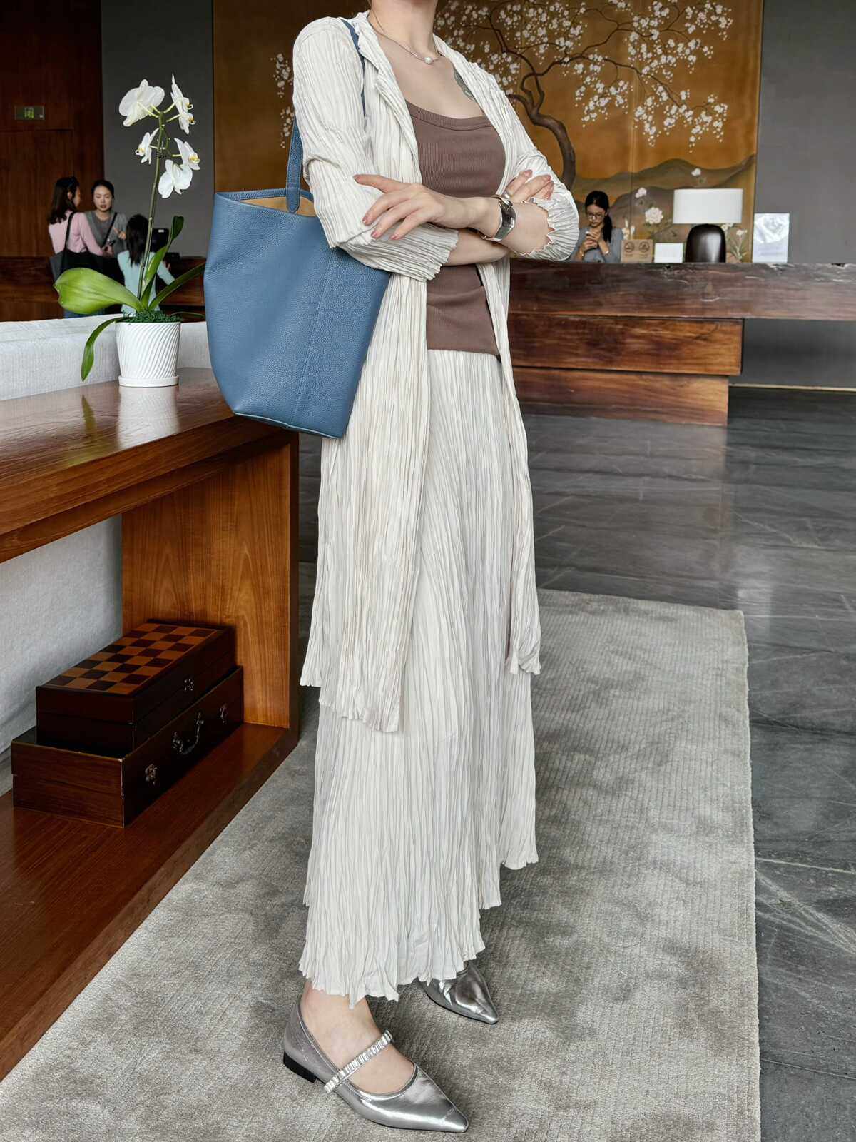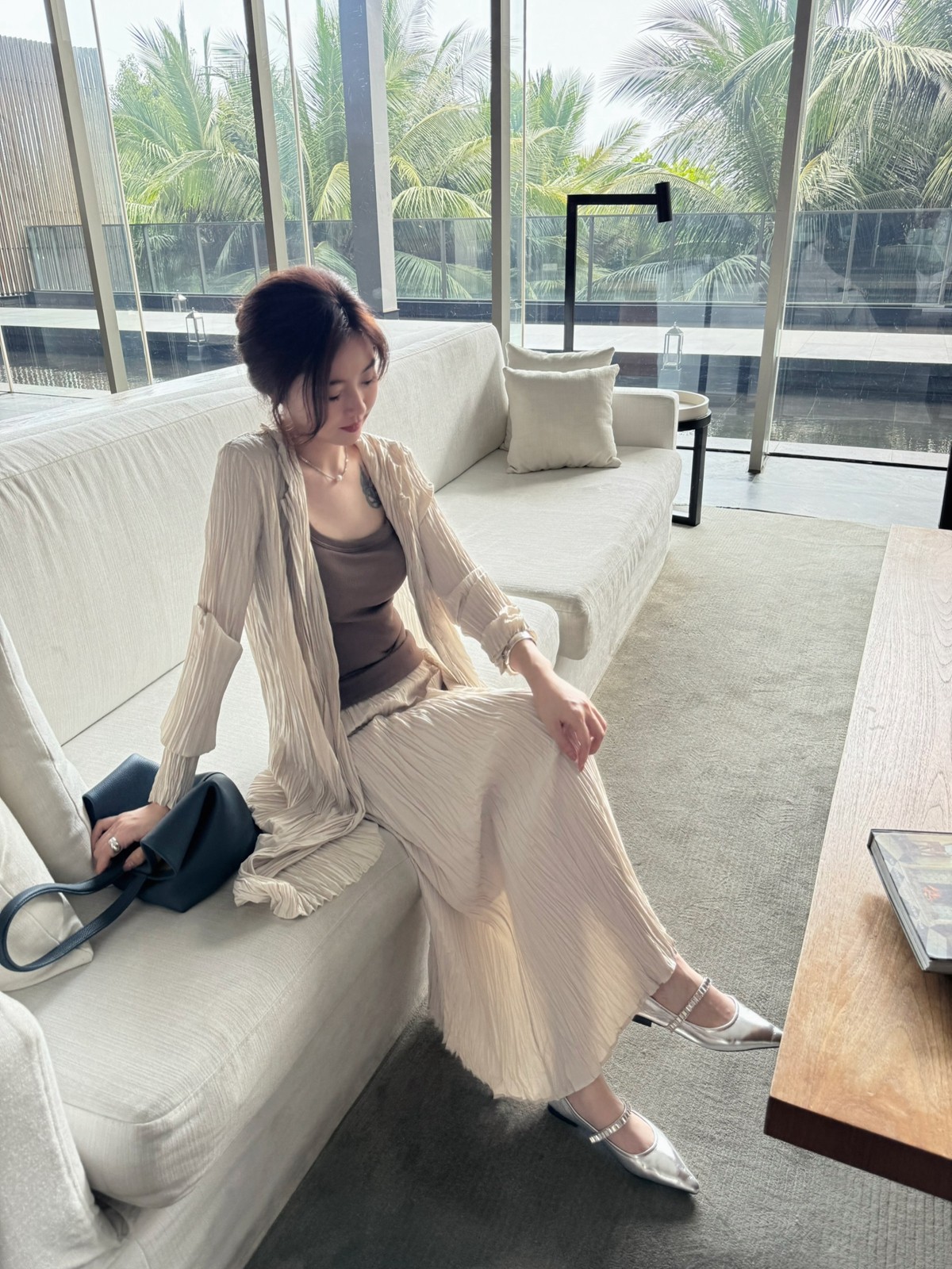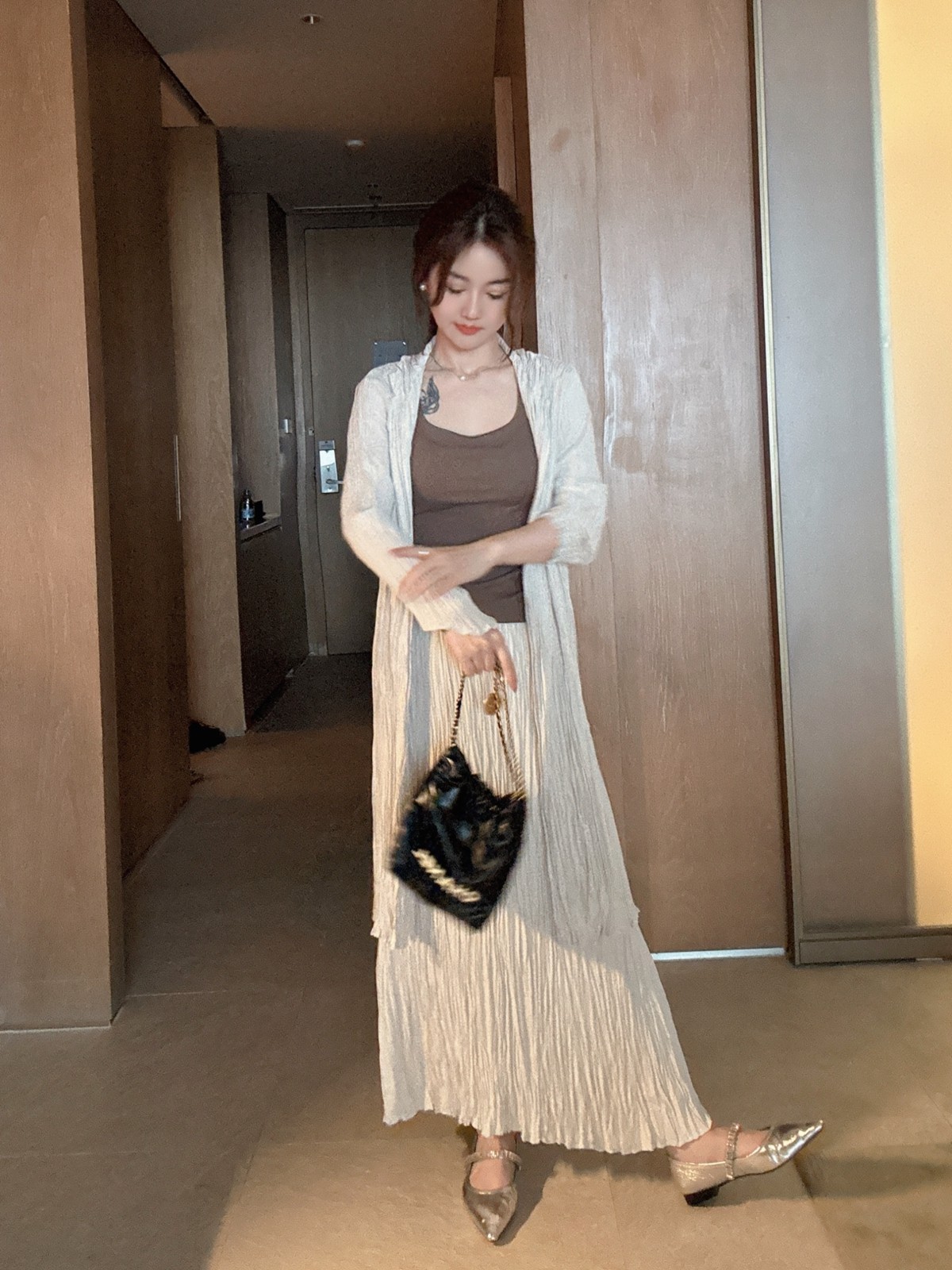 曹大曼MANMANS 法式优雅褶皱艺术感三宅褶皱肌理显瘦半裙开衫长裙