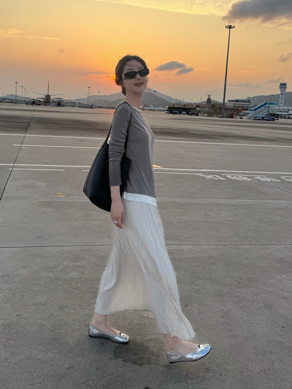 MJ STYLE灰色百褶西装裙女秋冬半身裙高腰休闲大摆a字过膝中长裙