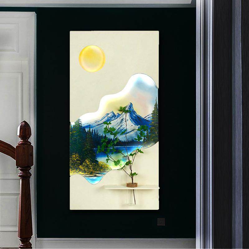 现代简约玄关装饰画立体砂岩壁灯挂画水培绿植墙面壁饰客厅壁画