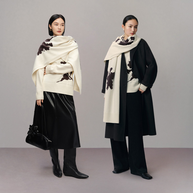 【茶梅提花100羊毛围巾】naivee纳薇25冬新款国风披肩温暖亲肤