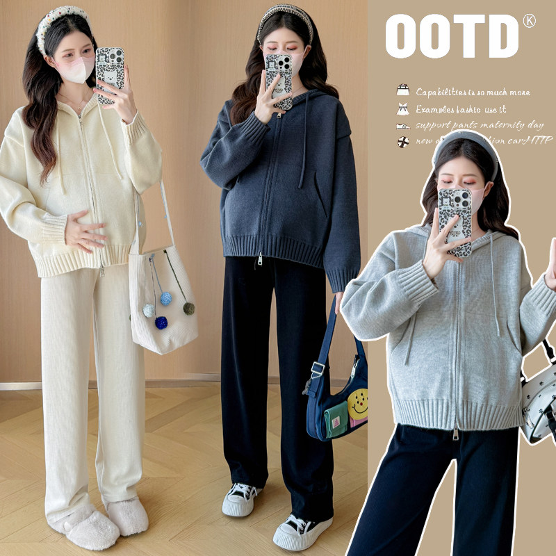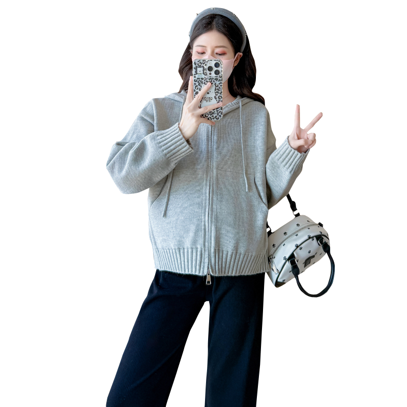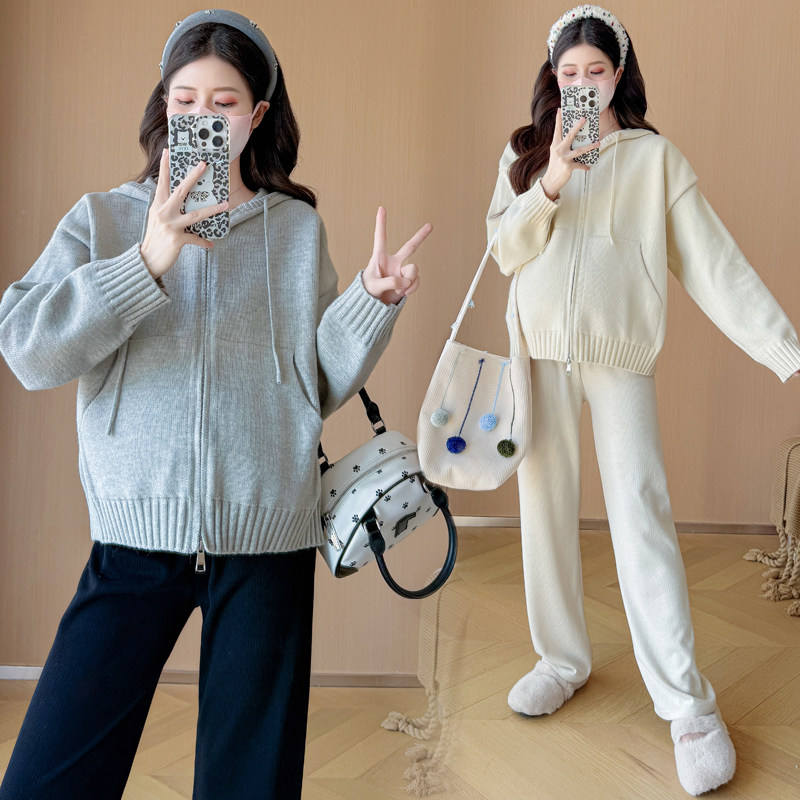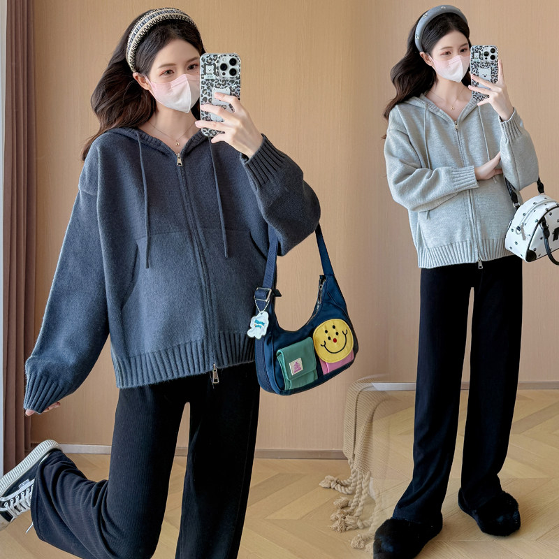 婧麒孕妇装秋季新款连帽毛衣外套女慵懒风针织开衫高级感穿搭上衣