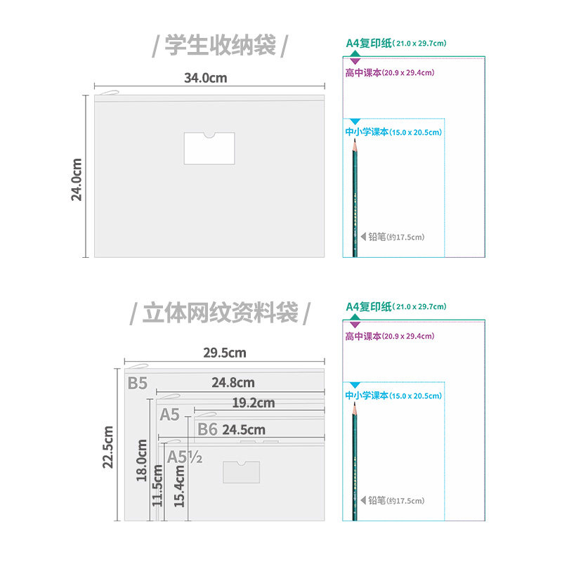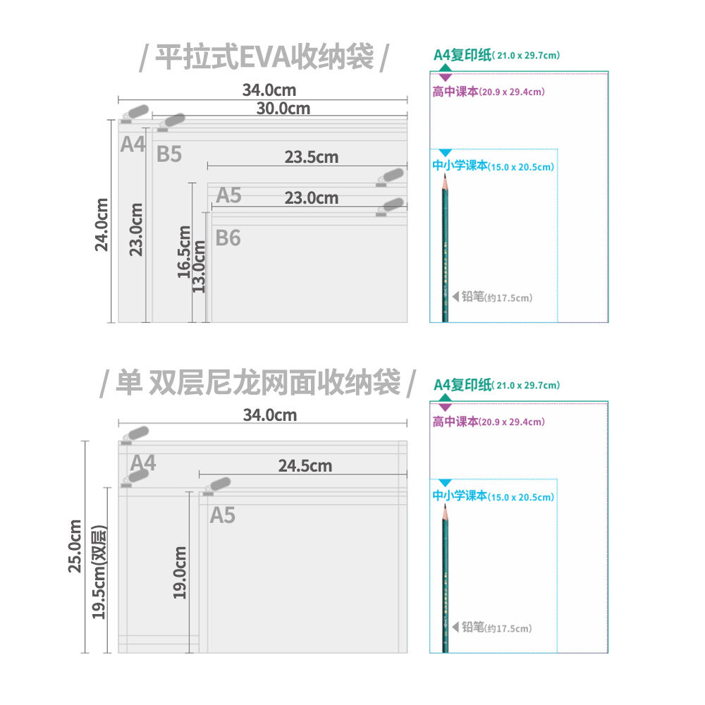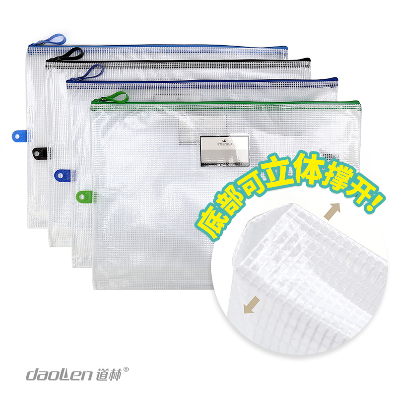 道林 资料袋b5透明网纹笔袋b6学生文具考试铅笔袋学科分类a4双层大容量网格简约ins收纳a5票据文件拉链袋办公