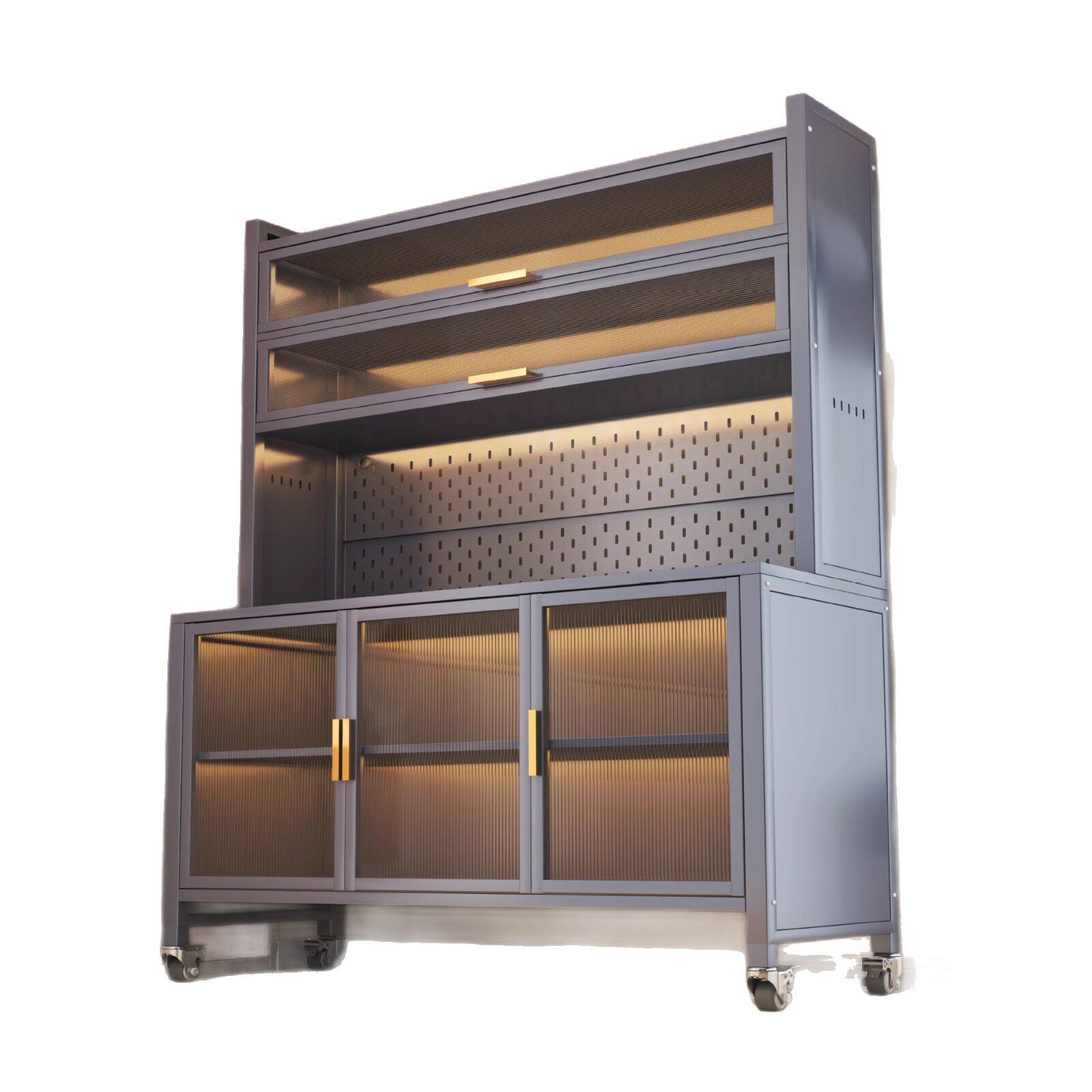 厨房置物架多层落地岩板餐边柜收纳柜家用多功能储物柜微波炉橱柜
