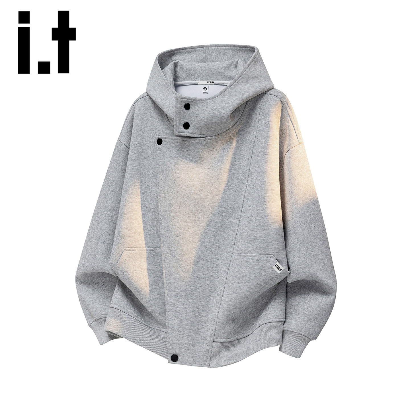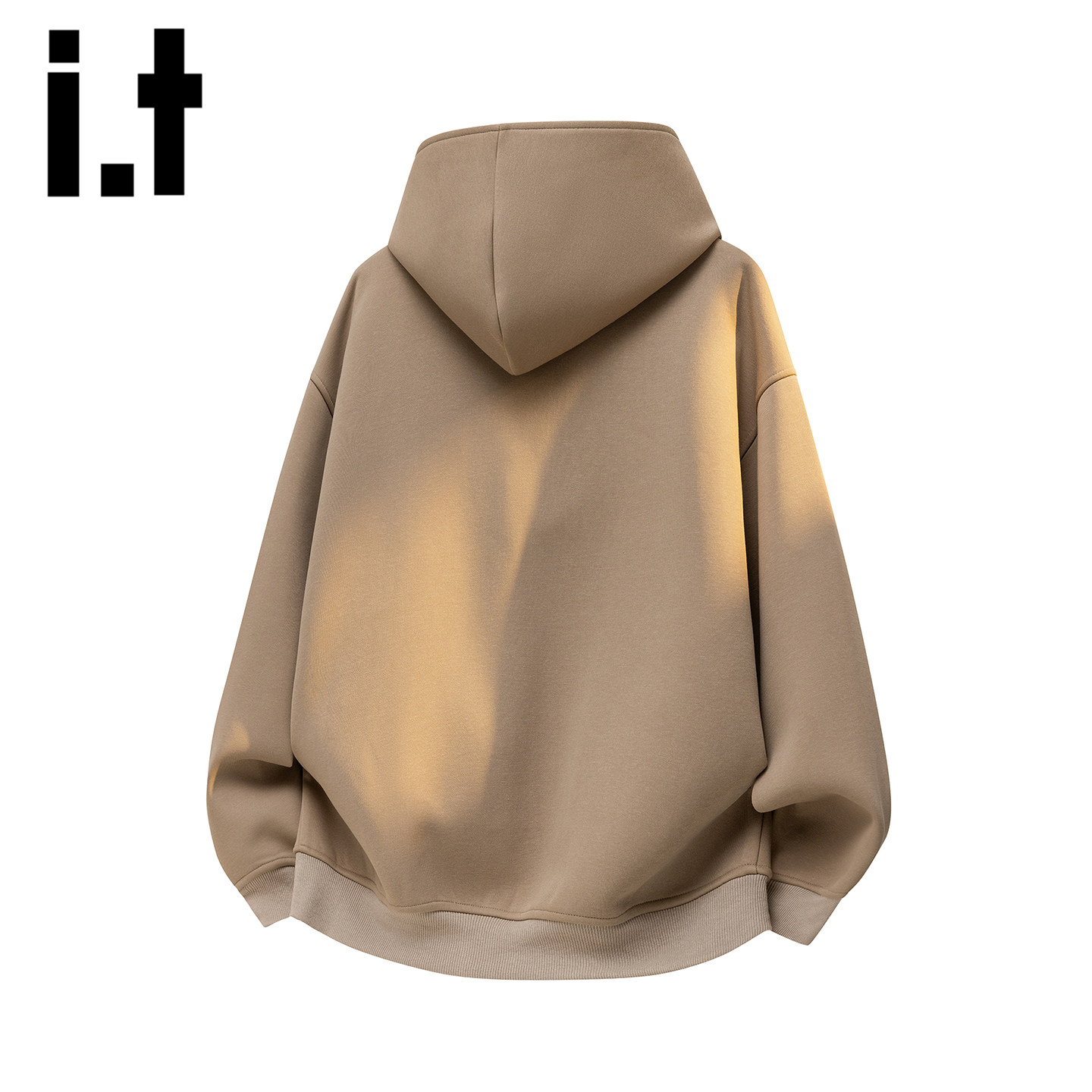it izzue美式重磅高领连帽卫衣男秋冬季加厚结构款情侣开衫卫衣Y