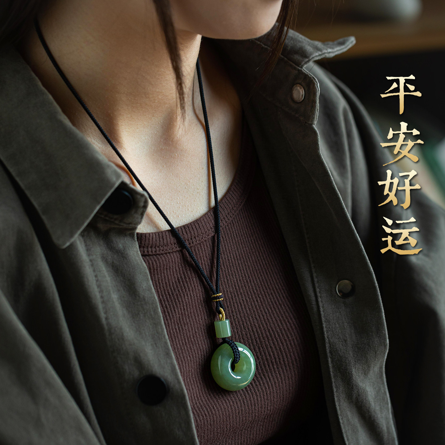 周大生和田玉平安扣吊青玉石项链本命年女编绳挂坠生日礼物送女友