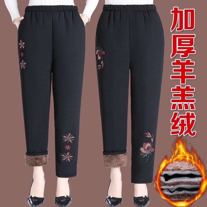 中老年人冬季裤子加绒加厚羊羔绒妈妈保暖棉裤女外穿宽松奶奶长裤