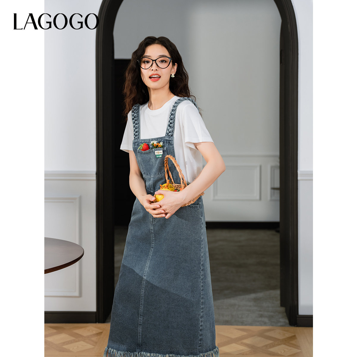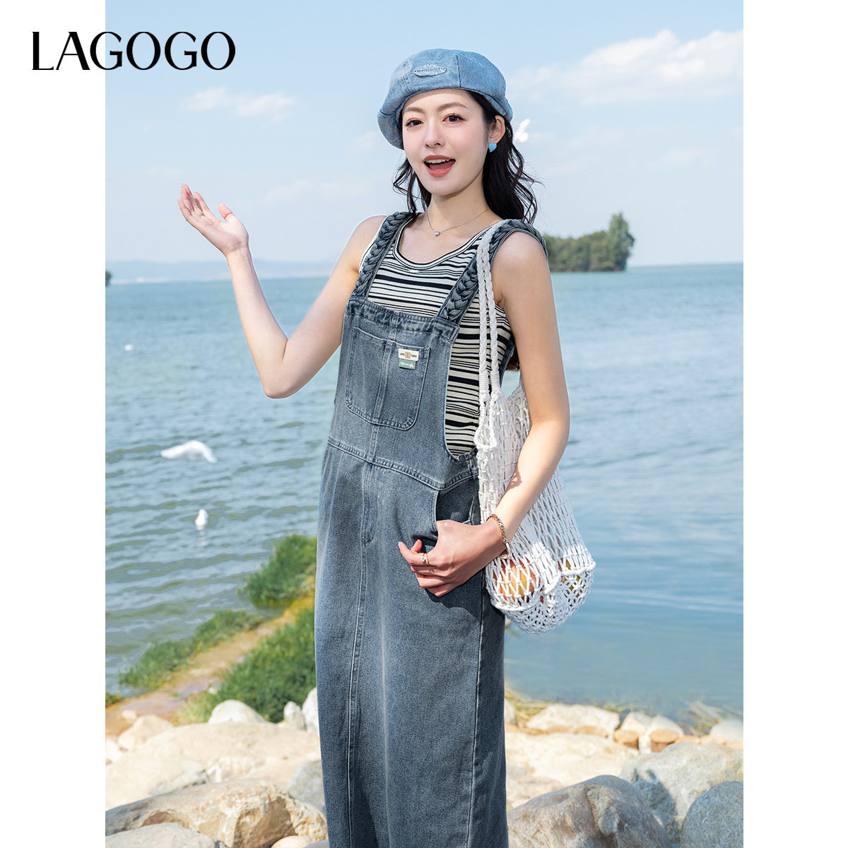 LAGOGO时髦减龄牛仔背心连衣裙女拉谷谷2025春新款a字洋气背带裙