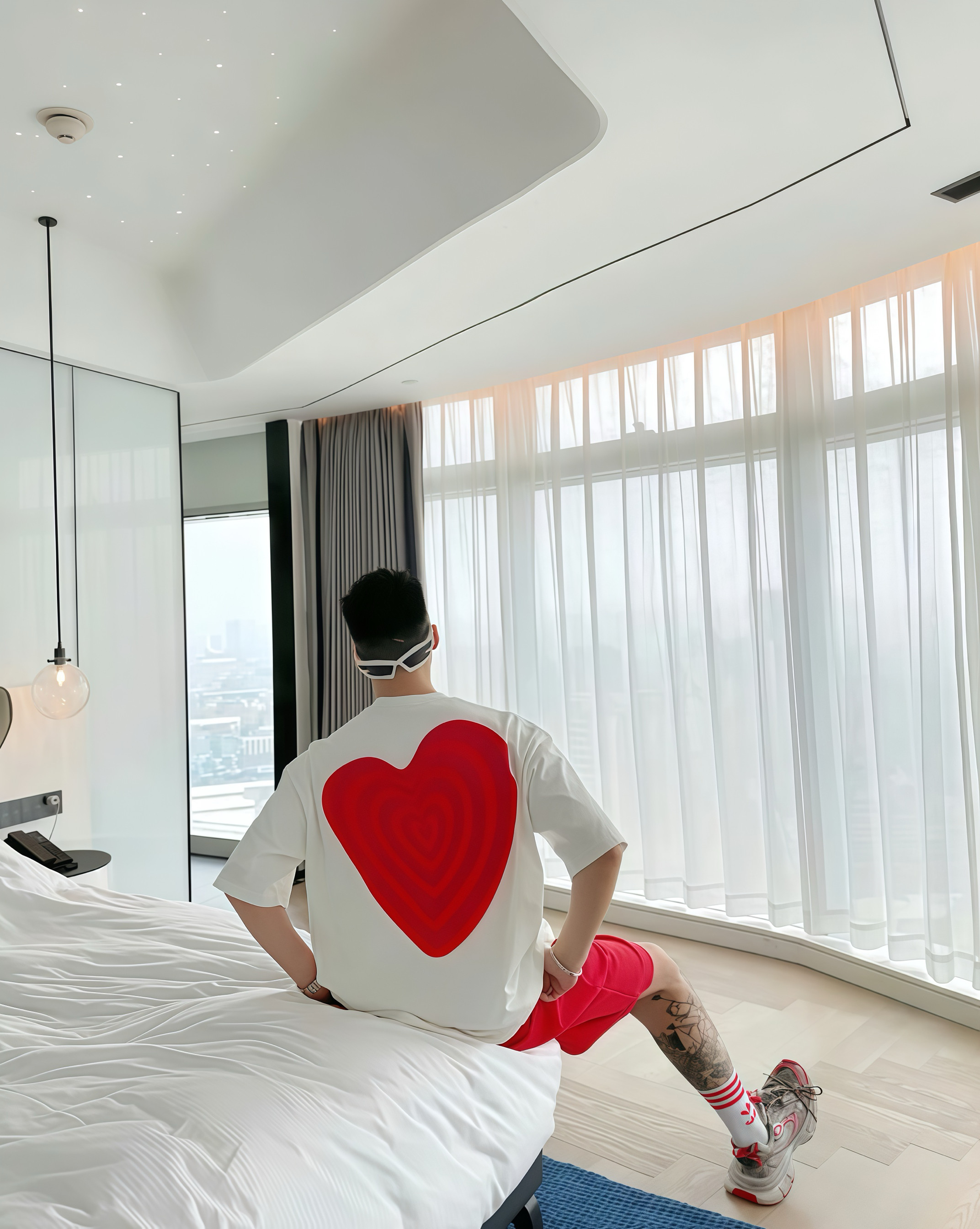 【陈发财】FA CAI新款爱心字母短袖圆领宽松百搭设计感T恤男女款