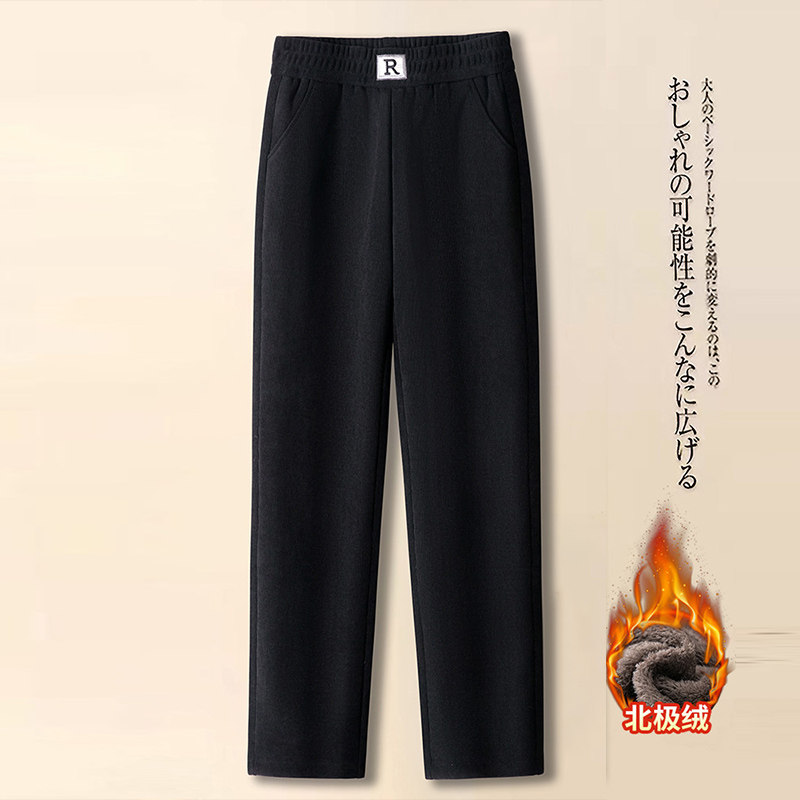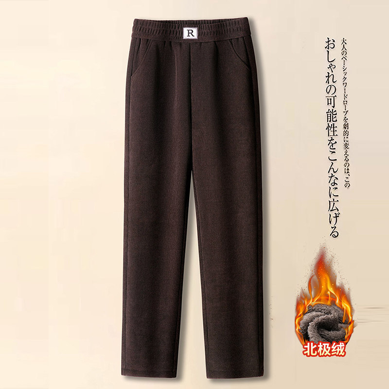 中老年人女裤秋冬加绒长裤外穿妈妈裤子宽松直筒高腰奶奶春秋大码