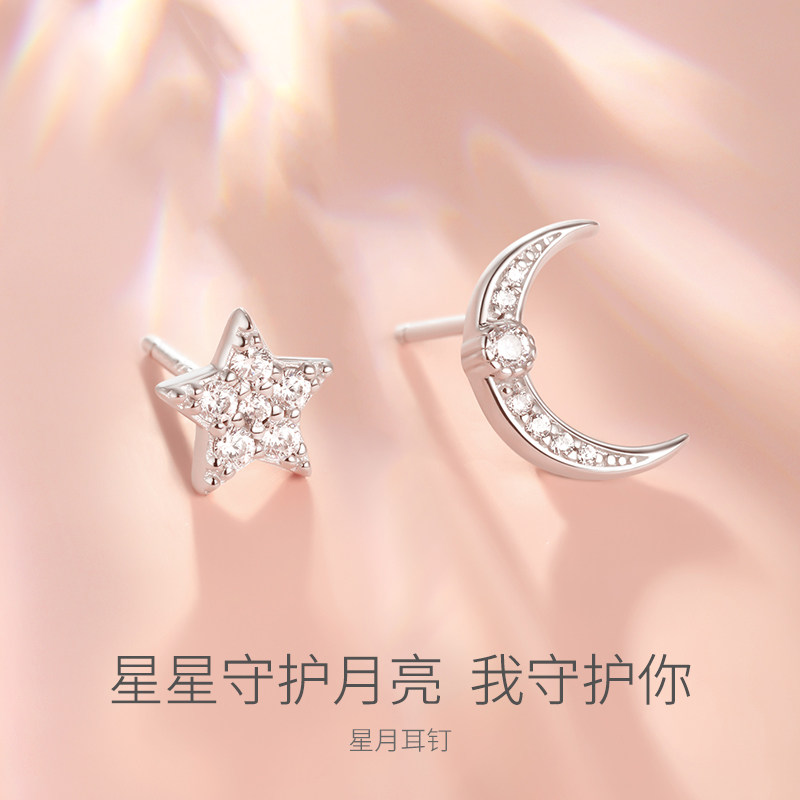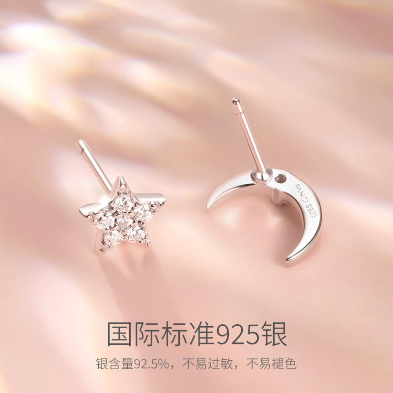 Fanci范琦星月耳钉女925银简约不对称设计感耳饰礼物