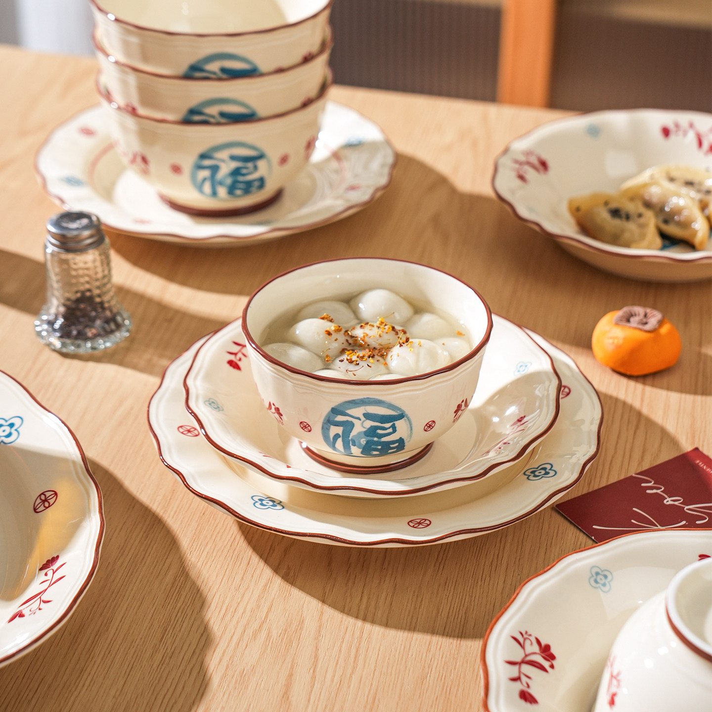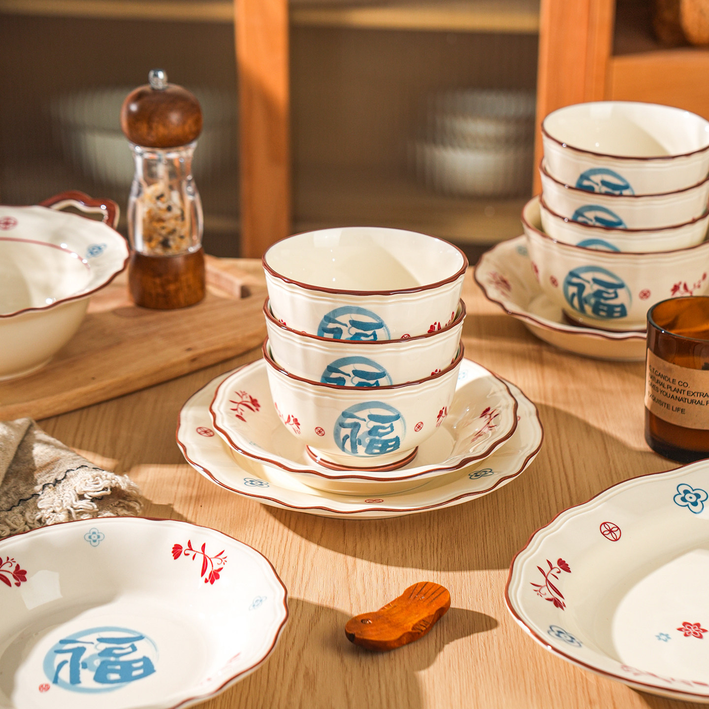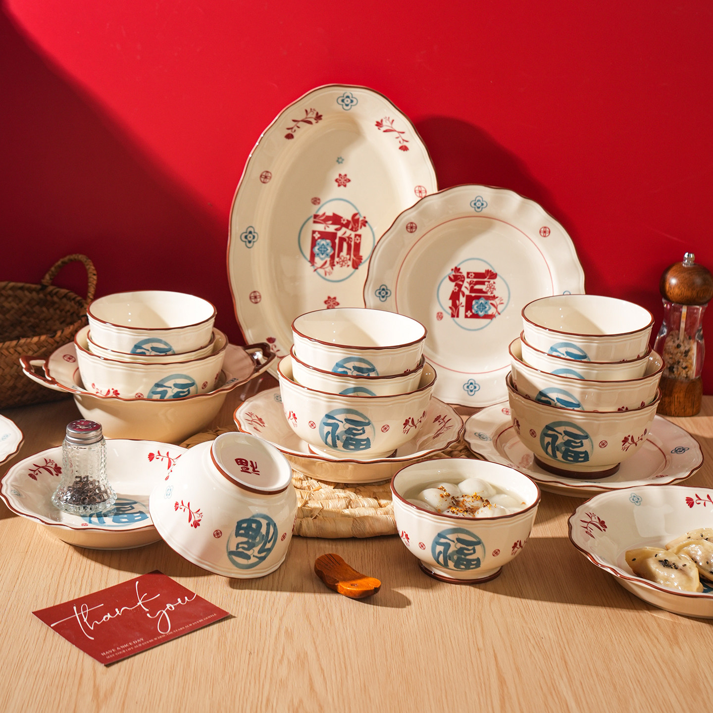 舍里中式福字陶瓷碗碟套装家用釉下彩米饭碗汤碗高级感西餐盘菜盘