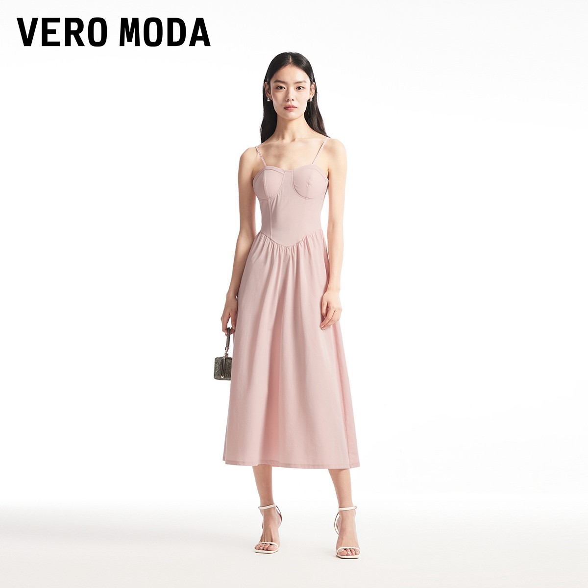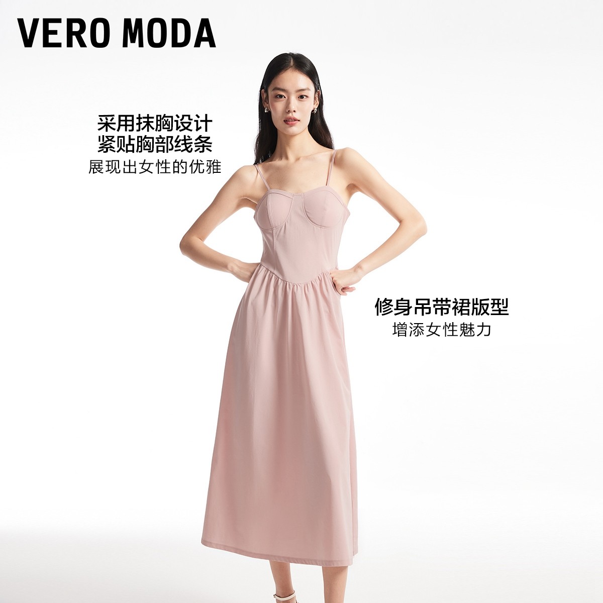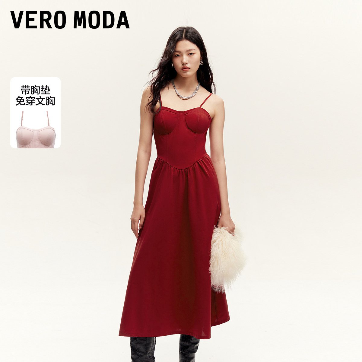 Vero Moda奥莱吊带连衣裙秋冬新款胸垫收腰A摆气质长款裙子流行