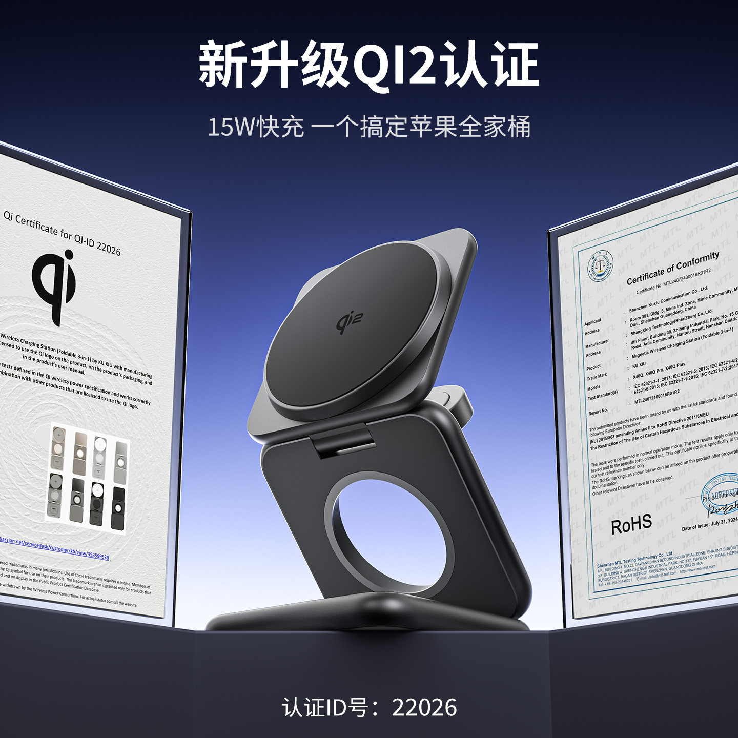 KUXIU三合一无线充电器支架适用苹果17pro华为Watch 5三星Watch 7/Ultra小米Watch S4手表耳机手机无线充底座