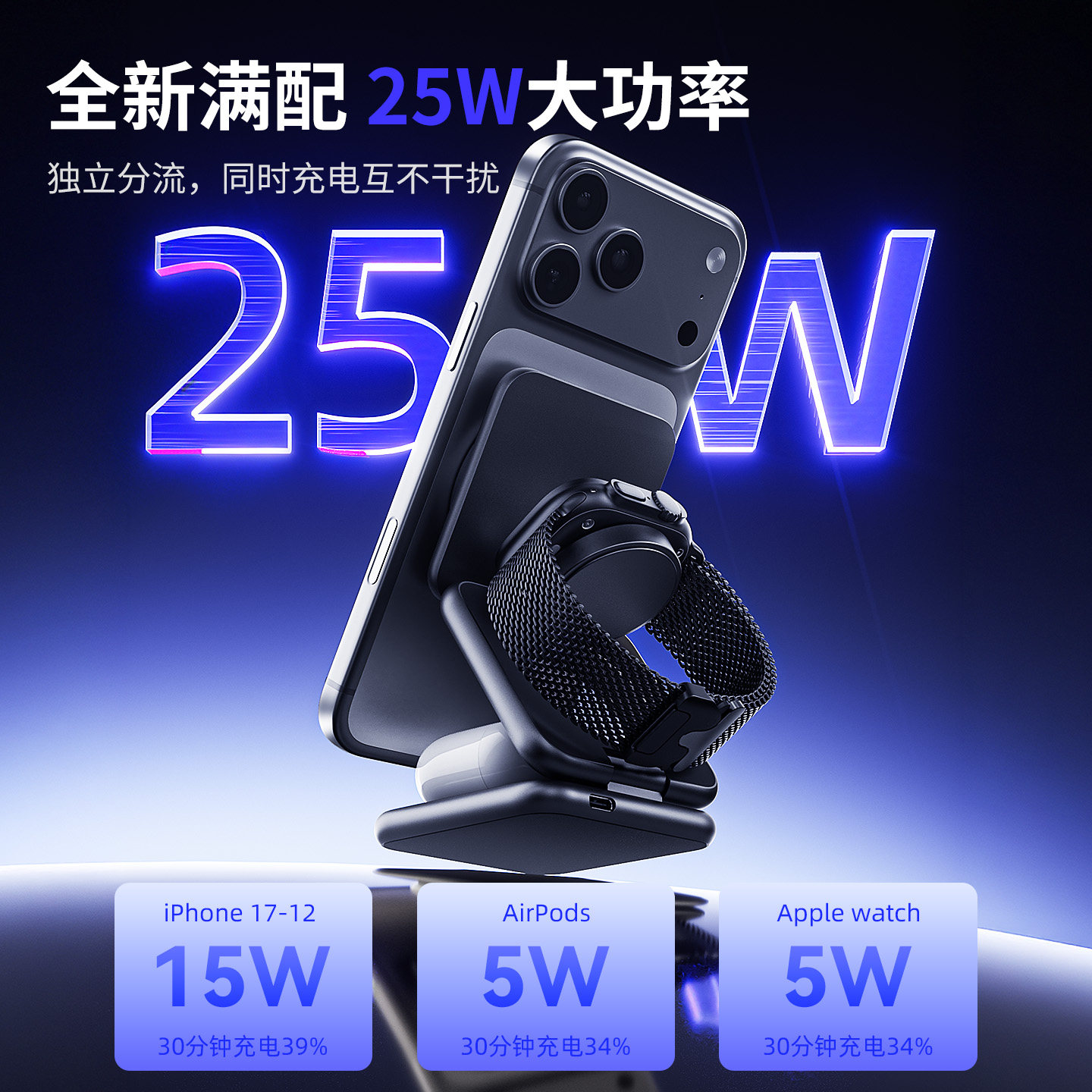 品胜桌面充电站三合一无线充电器45W适用苹果17快充apple watch手表16磁吸magsafe手机iPhone耳机15w底座S11