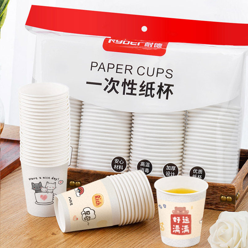 一次性纸杯水杯家用可爱饮料茶杯子加厚环保喜庆加硬整箱防烫特厚