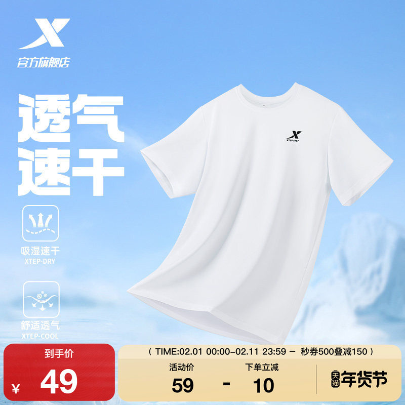 特步速干T男夏季宽松短袖冰丝户外跑步T恤透气上衣男士健身运动服