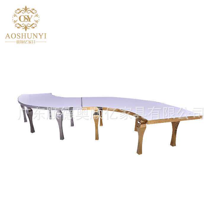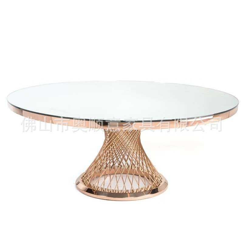 钛金后现代餐桌椅组合家具套装304#不锈钢商用宴会桌子