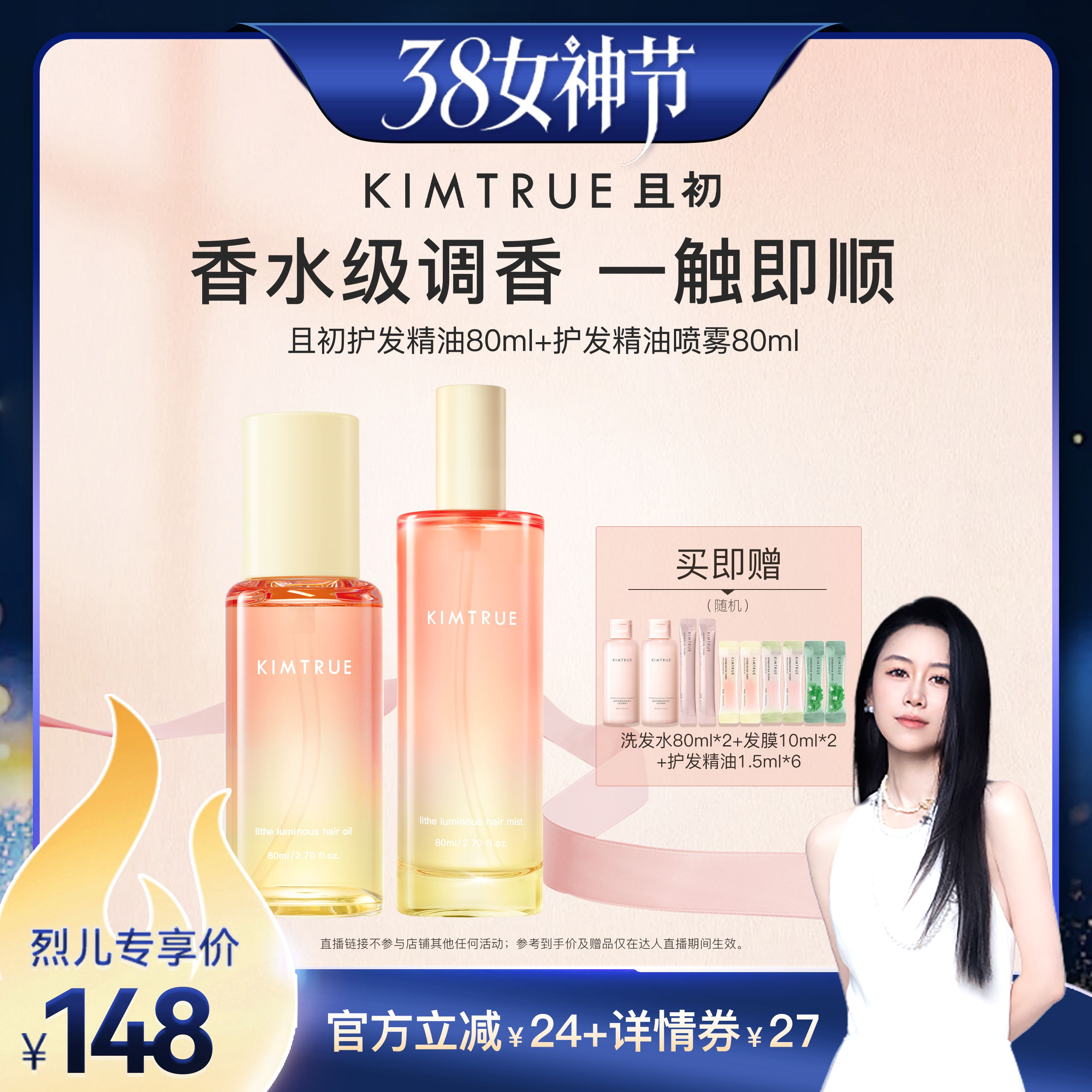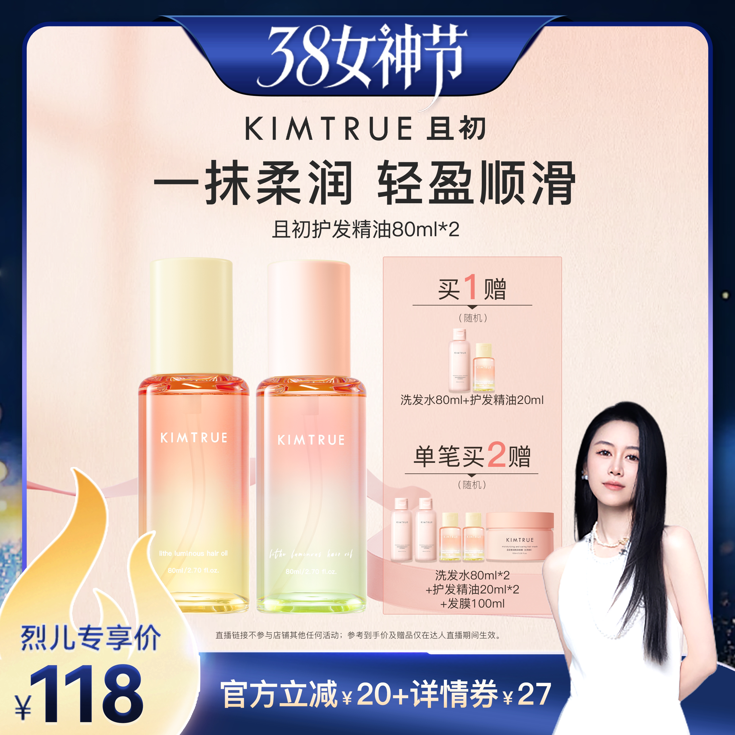 KIMTRUE且初护发精油自然香氛改善防毛躁柔顺护理轻盈柔顺