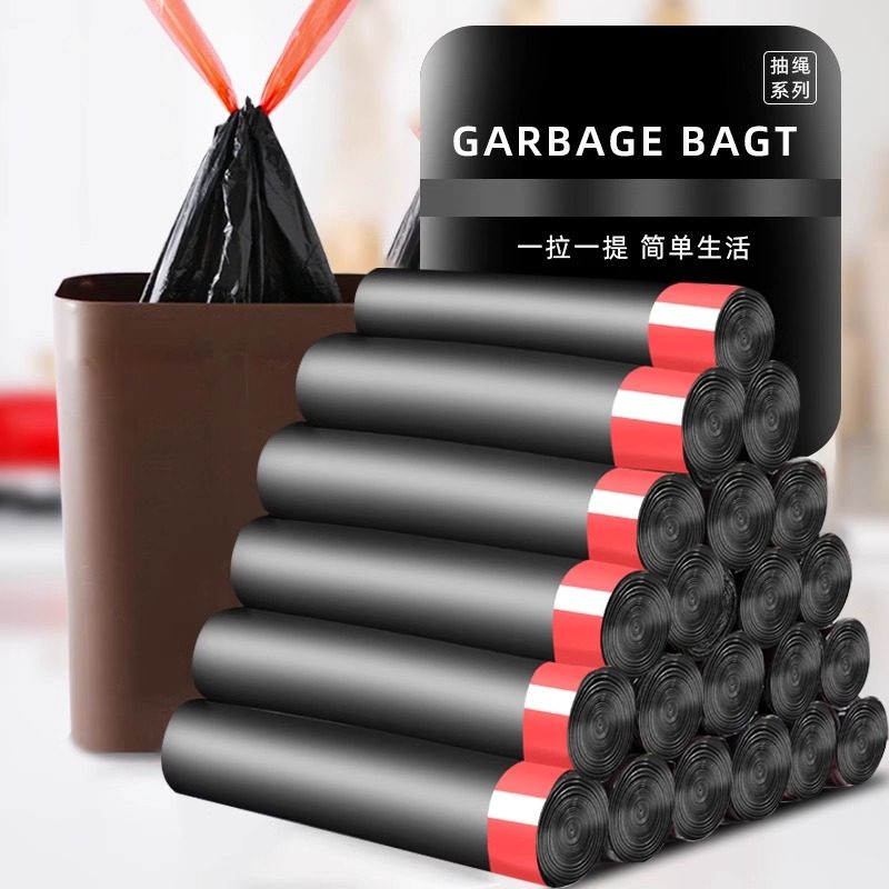手提式抽绳垃圾袋家用加厚实惠批发装厨房黑色大号垃圾袋