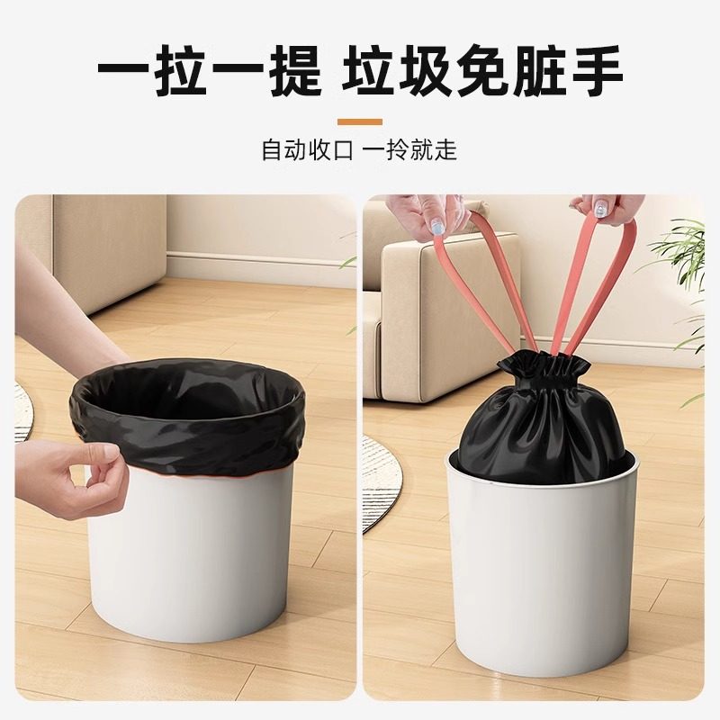 抽绳式垃圾袋家用手提式加大塑料袋黑色厨房收纳袋收口加厚实惠装
