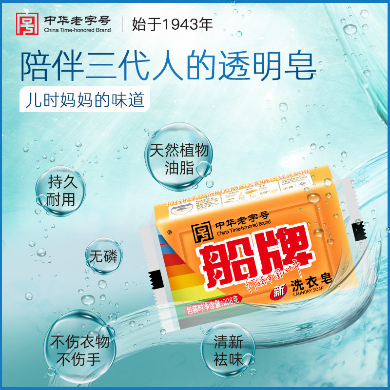 船牌洗衣皂肥皂208g10块家用实惠装超强去污透明皂官方正品旗舰店