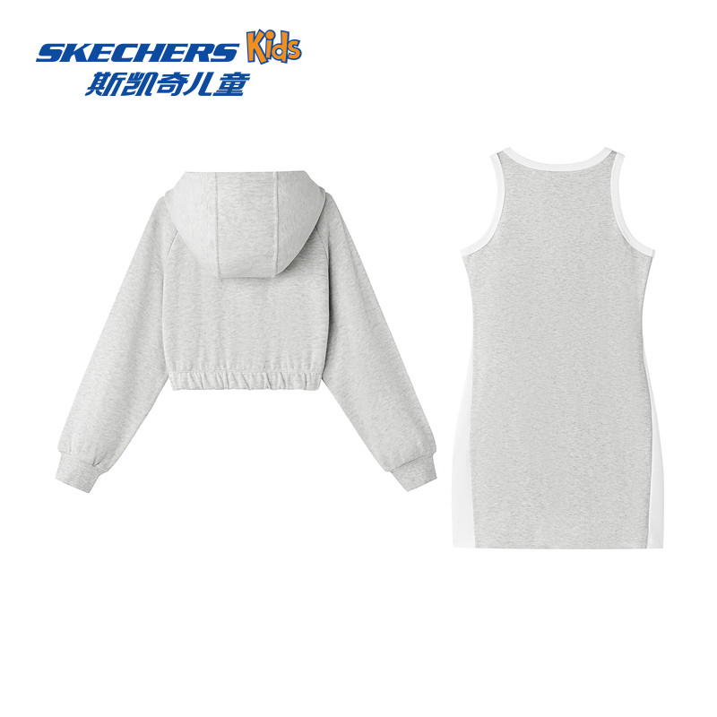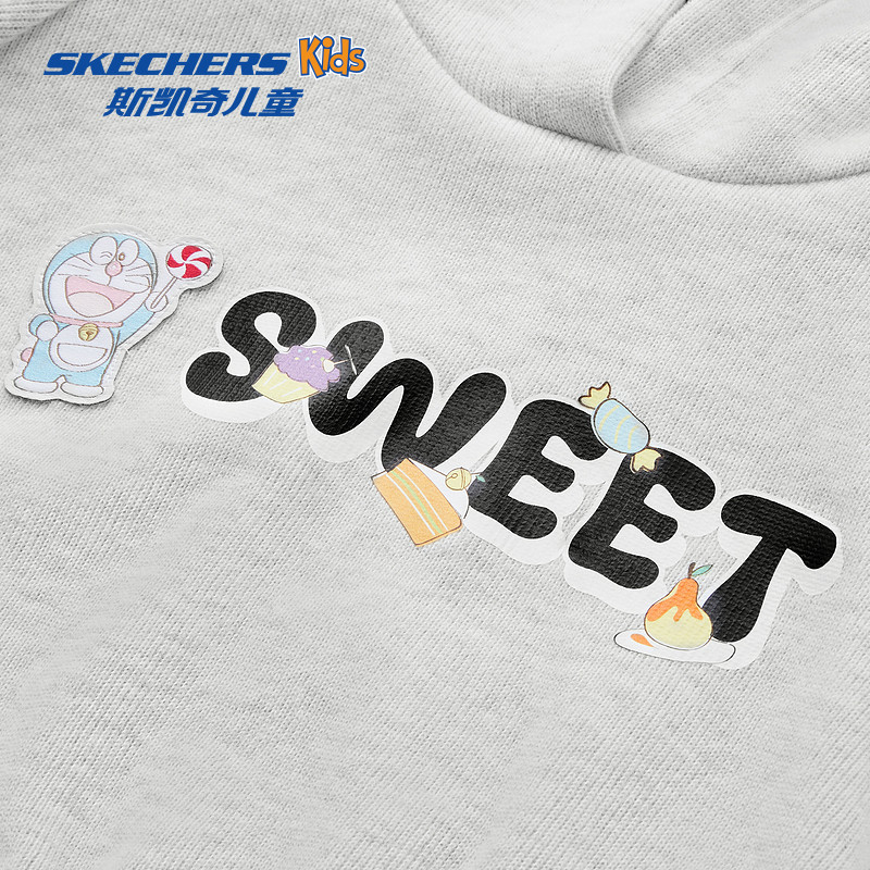 Skechers斯凯奇哆啦A梦联名系列女童时尚舒适连帽卫衣连衣裙套装