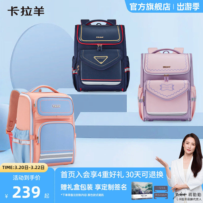 卡拉羊1-4-6年级小学生减负大嘴书包防下坠轻大容量女双肩包护脊