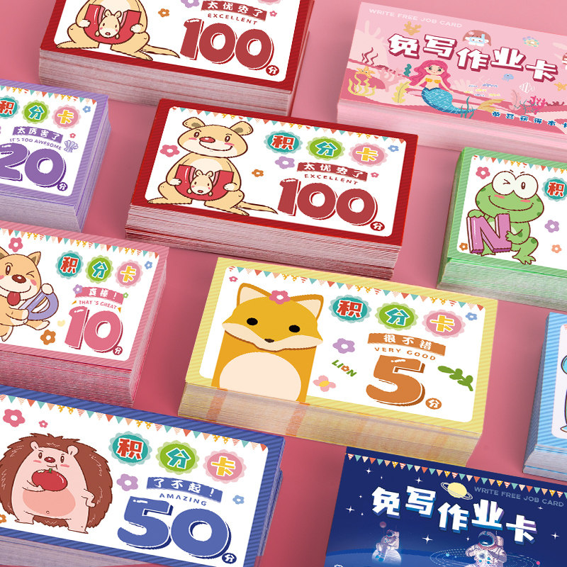 小朋友奖励积分卡1分2分10分卡通积分奖券兑换小学生表扬激励儿童学习加分小卡片家庭鼓励孩子好习惯自律神器