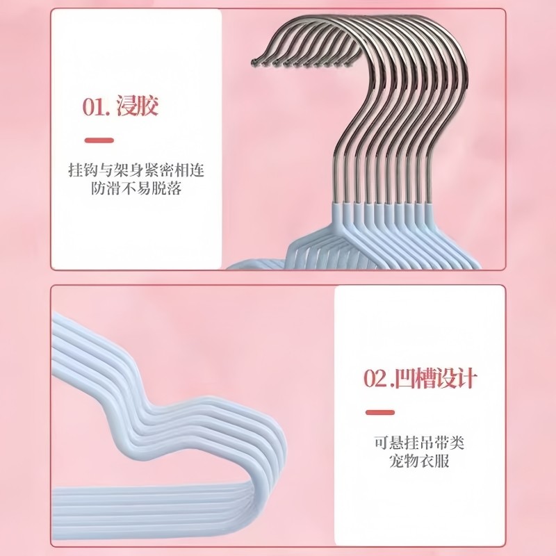 宠物衣架狗狗小猫咪迷你小衣架浸塑无痕防滑干湿两用金属晾衣架