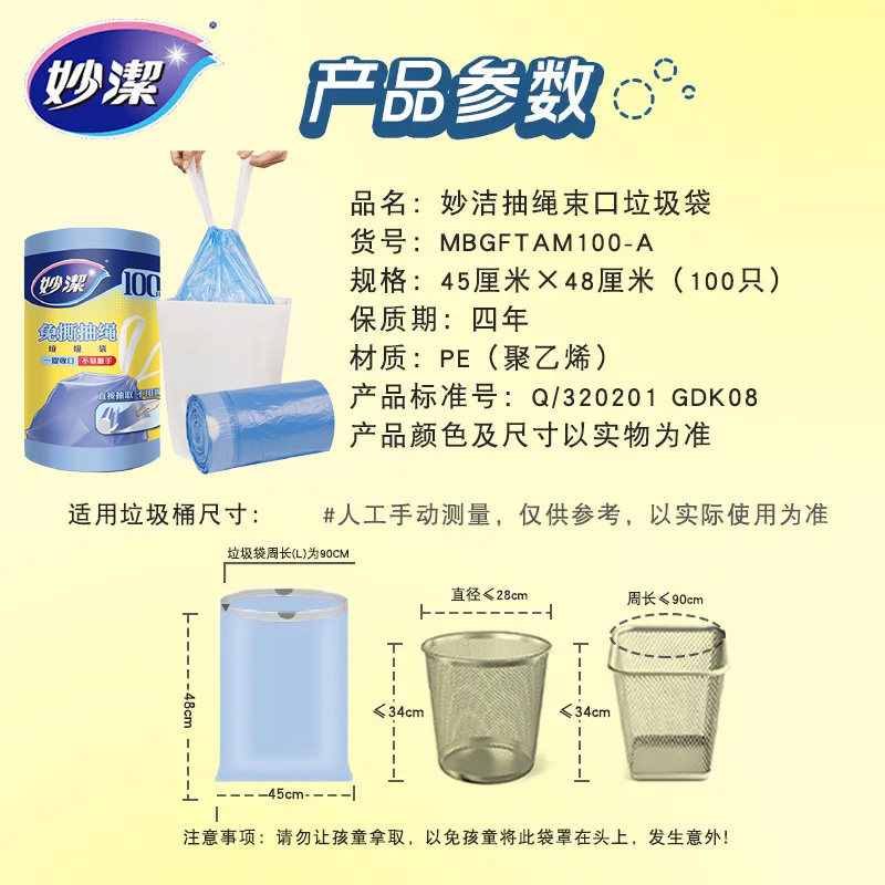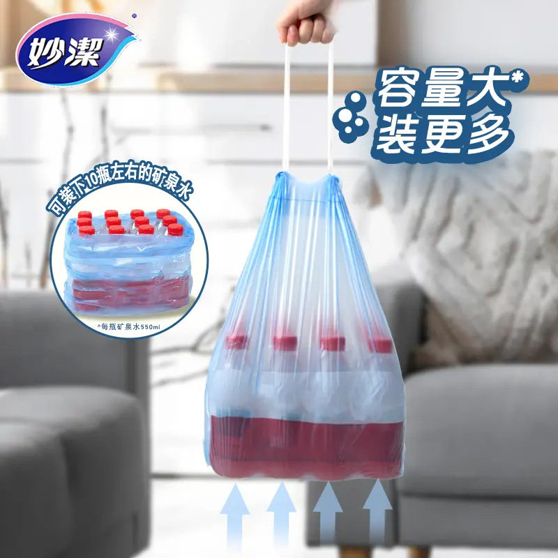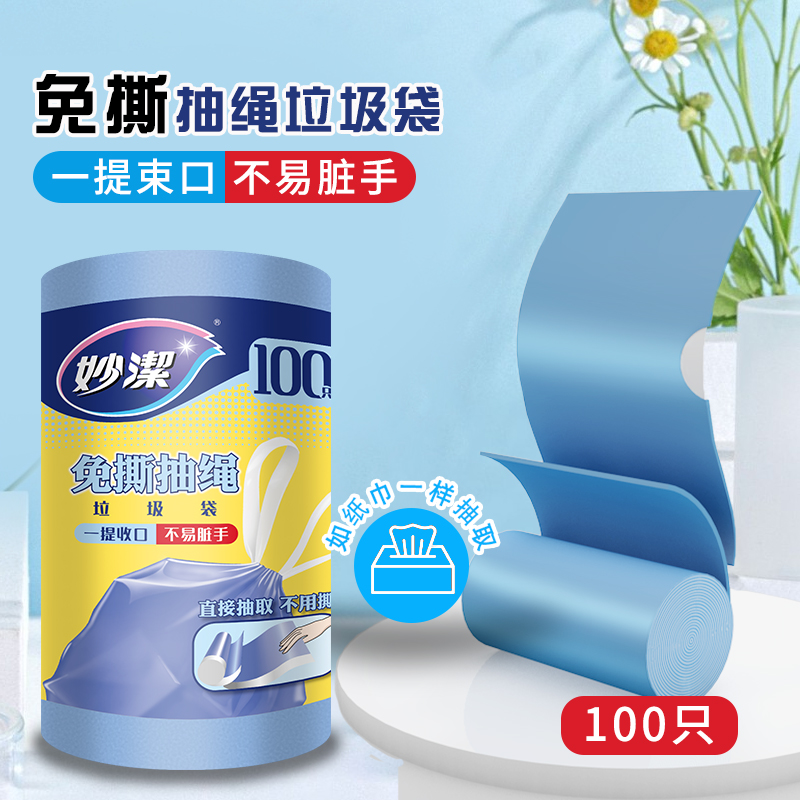 妙洁免撕抽绳垃圾袋自动收口家用45*48cm中号双面2丝
