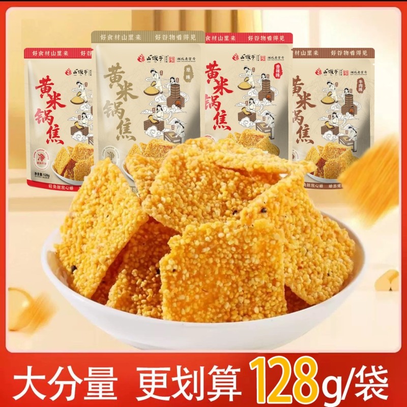 山饭子手工玉米锅巴小黄米谷物粗粮健康牛肉味解馋网红零食大包装