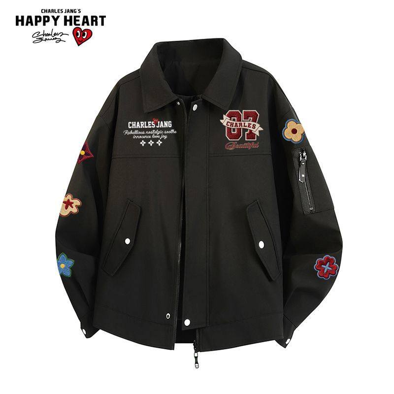 查尔斯桃心美式花卉印花扎染翻领外套男女春秋季新款潮流休闲夹克