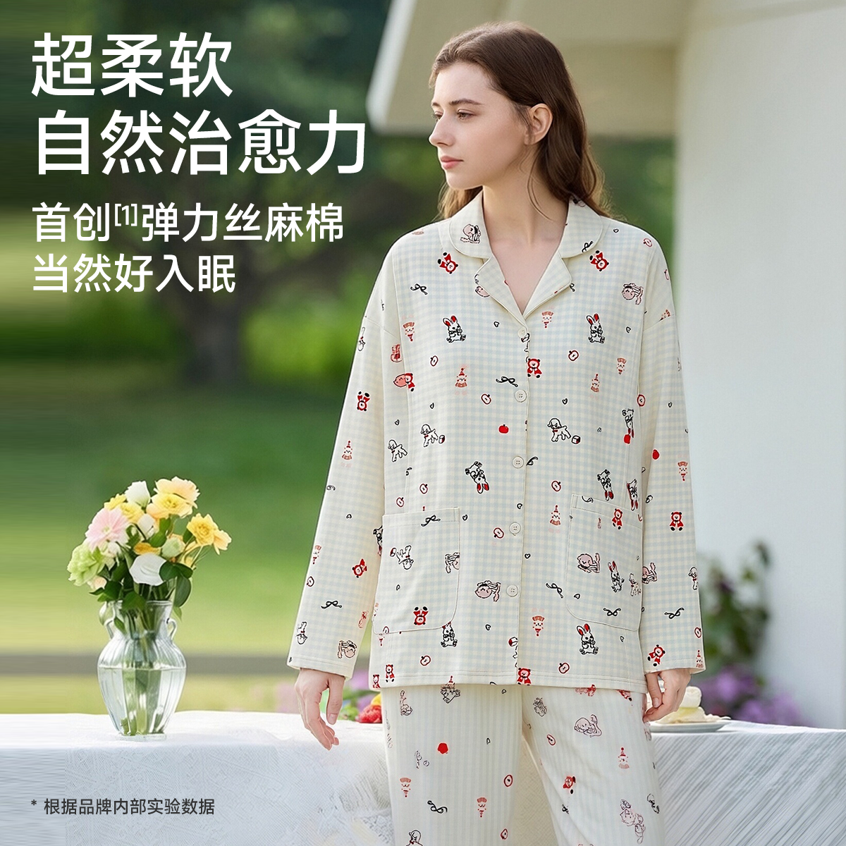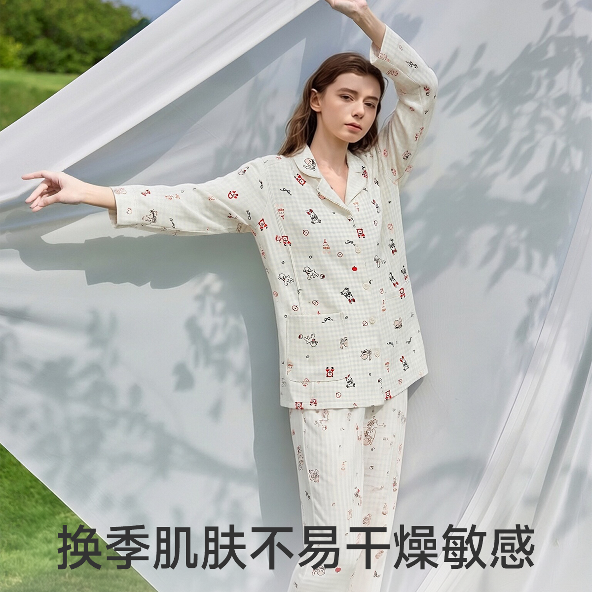 cutelife【轻羽】月子服女士长袖家居服孕妇竹棉哺乳睡衣秋冬套装