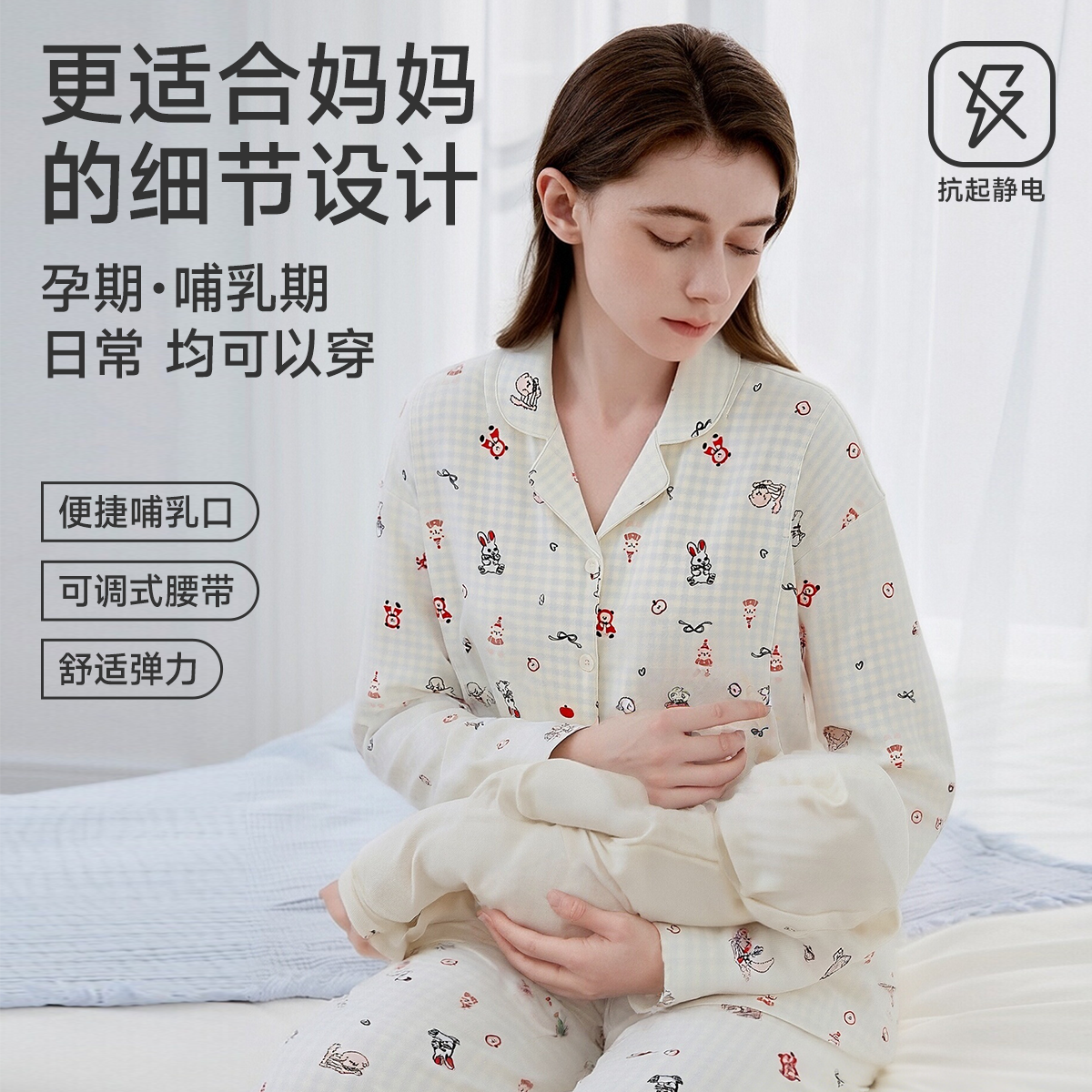 月子服纯棉春秋冬季产后12月份孕妇睡衣可外穿喂奶产妇哺乳家居服