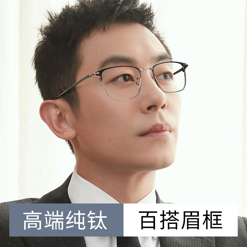 超轻纯钛商务半框近视眼镜男可配度数镜片男士大脸眼睛框镜架男款