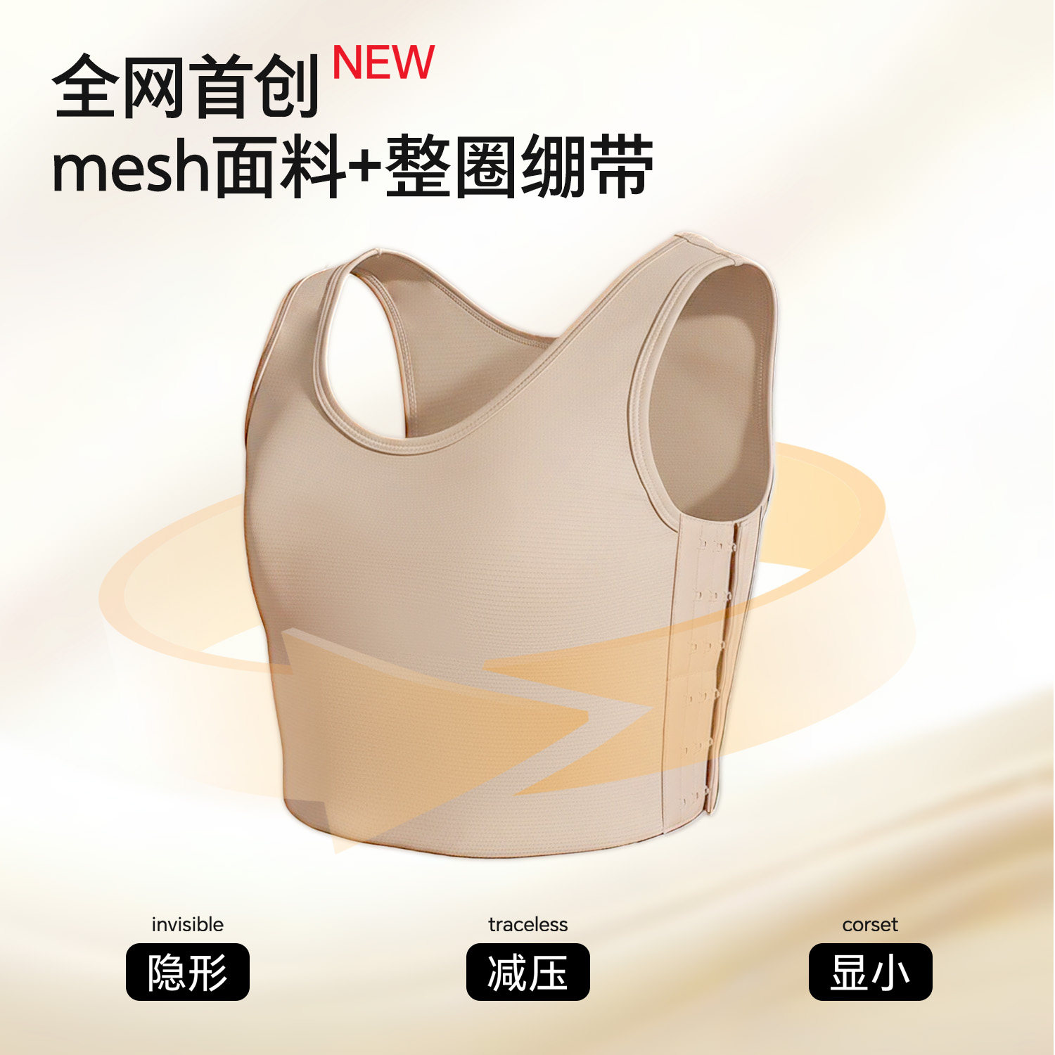360度环塑绷带衣束胸帅t大胸显小抗震防凸学生运动无痕背心cos