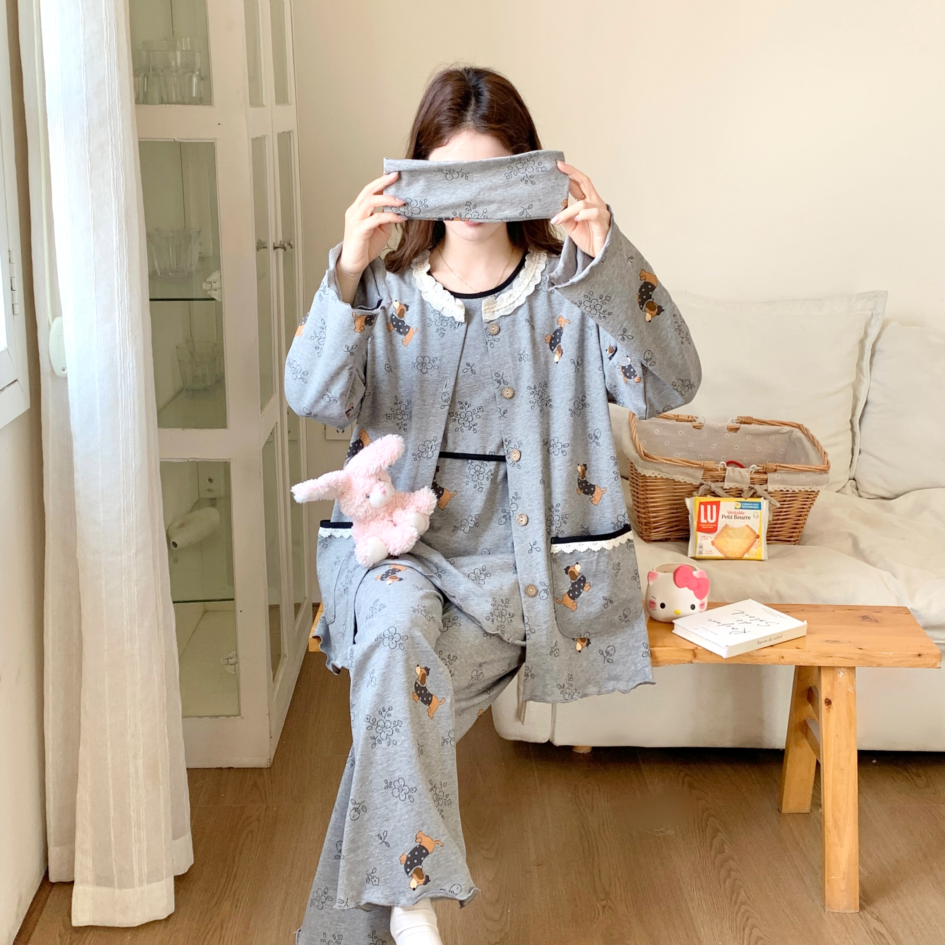 cutelife【轻羽】月子服女士长袖家居服孕妇竹棉哺乳睡衣秋冬套装