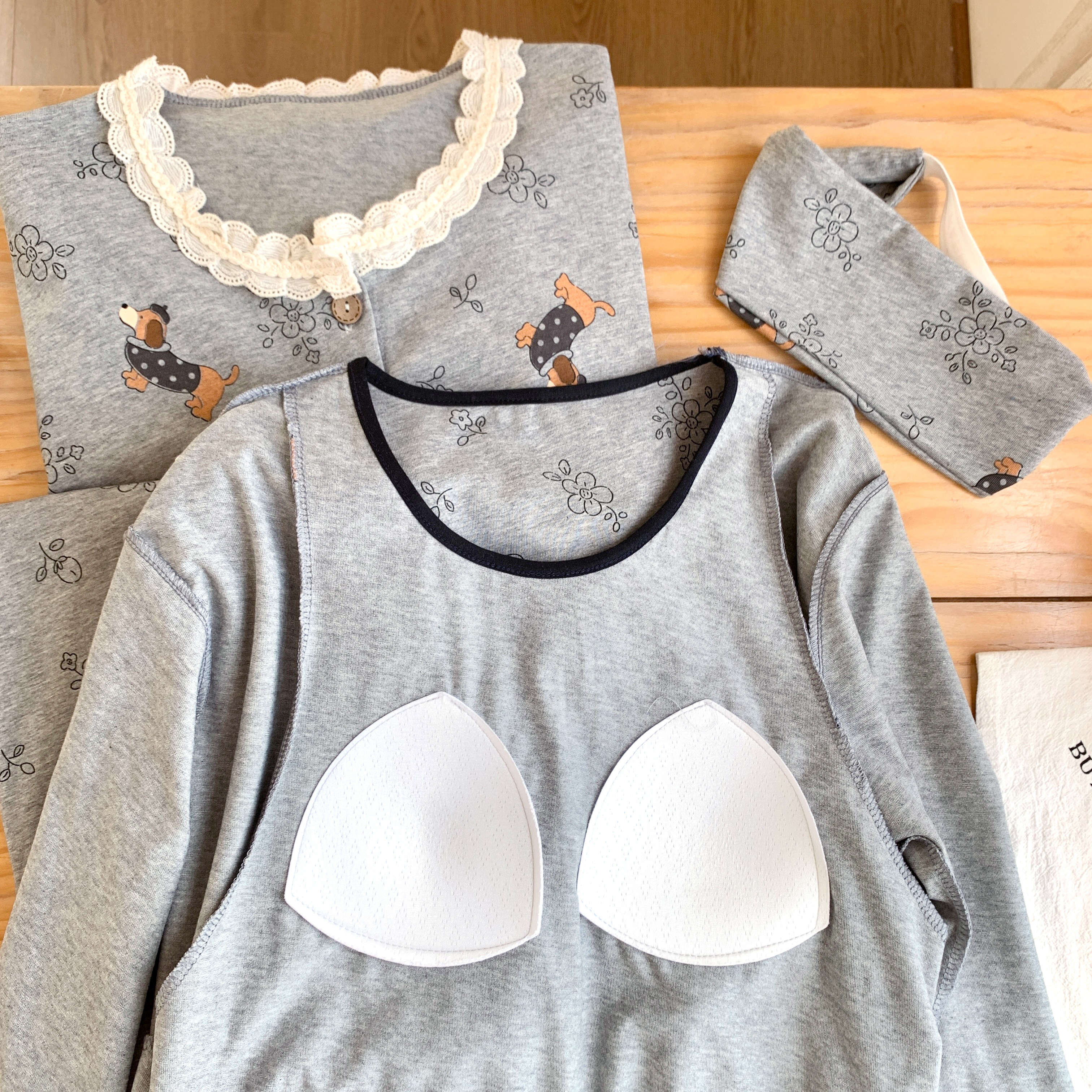 春秋季云感纯棉带胸垫简约月子服产后产妇夏薄款喂奶孕妇哺乳睡衣