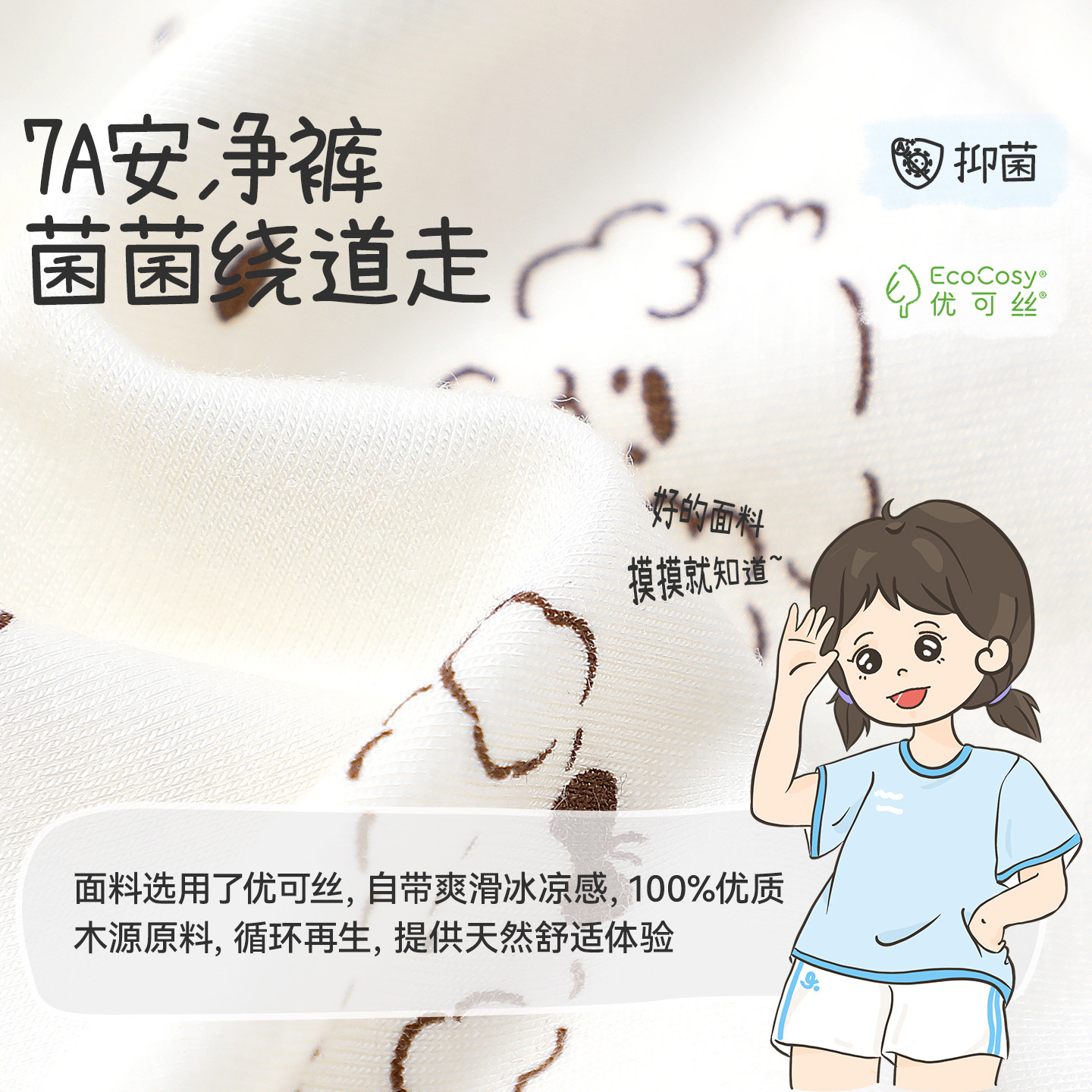久岁伴miiiiichan联名儿童内裤女童春秋薄款蚕丝透气女孩三角短裤