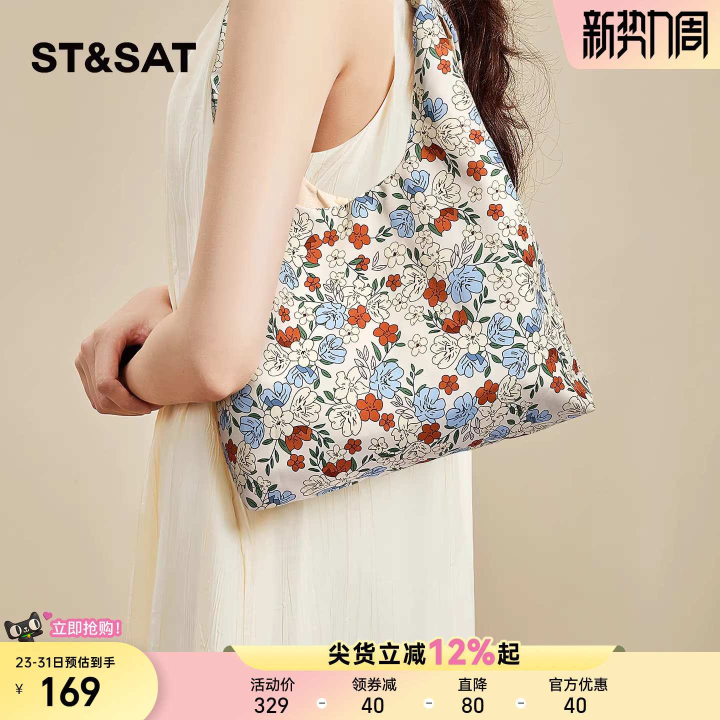 星期六文艺碎花帆布包包女小众设计腋下单肩包 ins清新手提女包袋