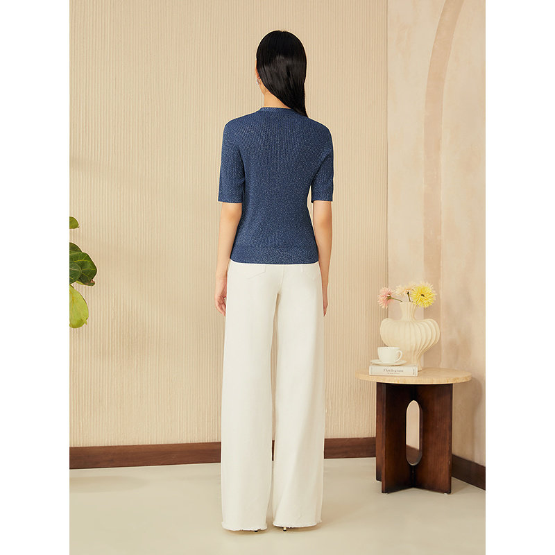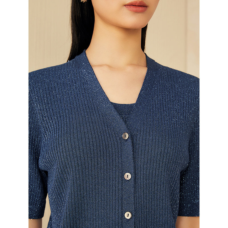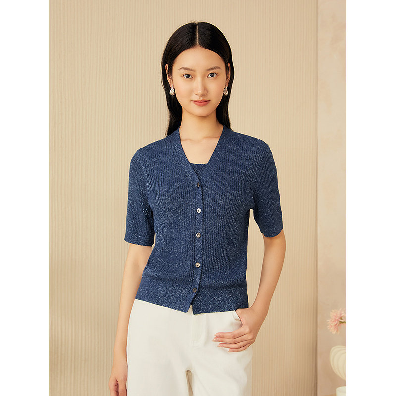 YINER音儿专选女装夏季莱赛尔天丝亚麻混纺假两件亮丝针织衫