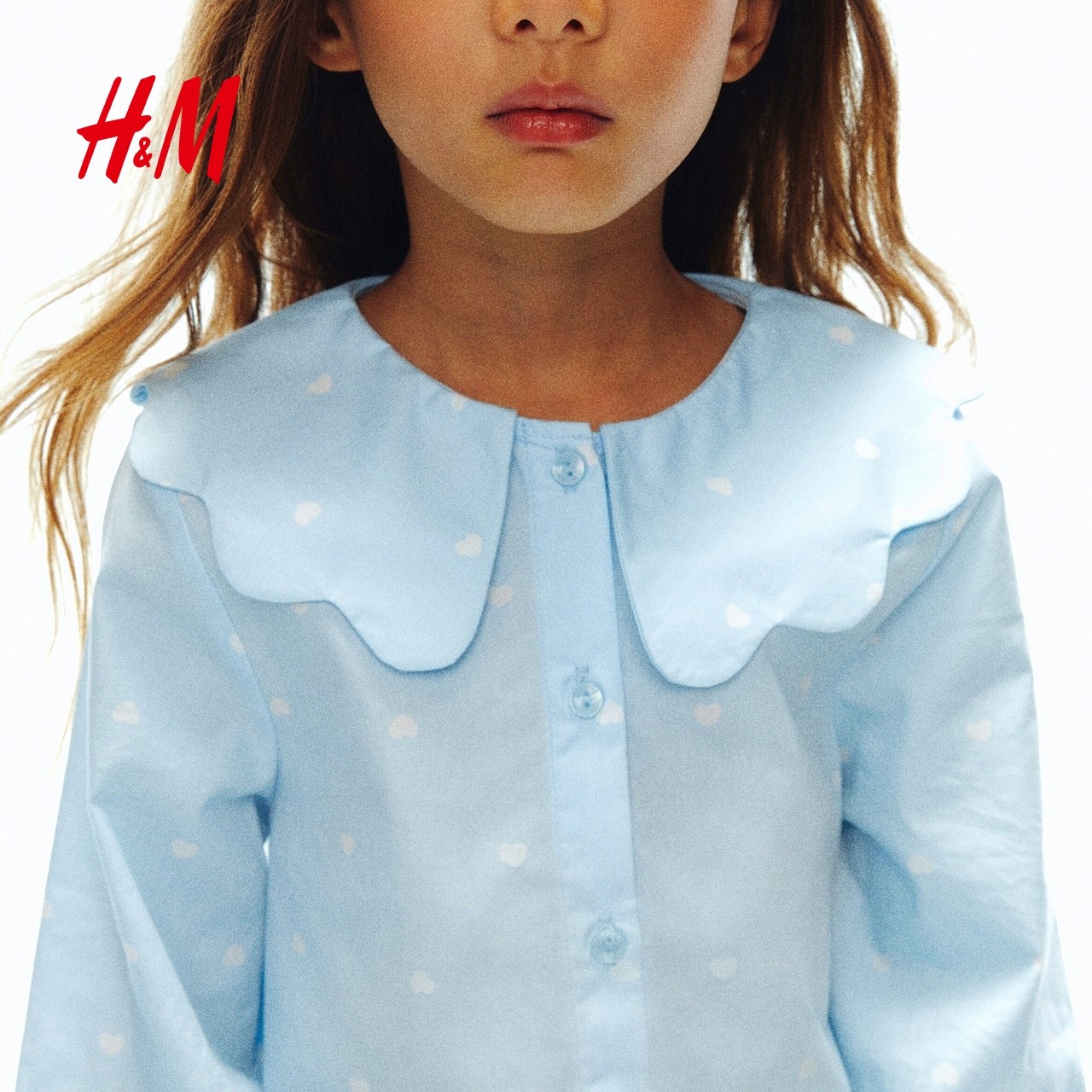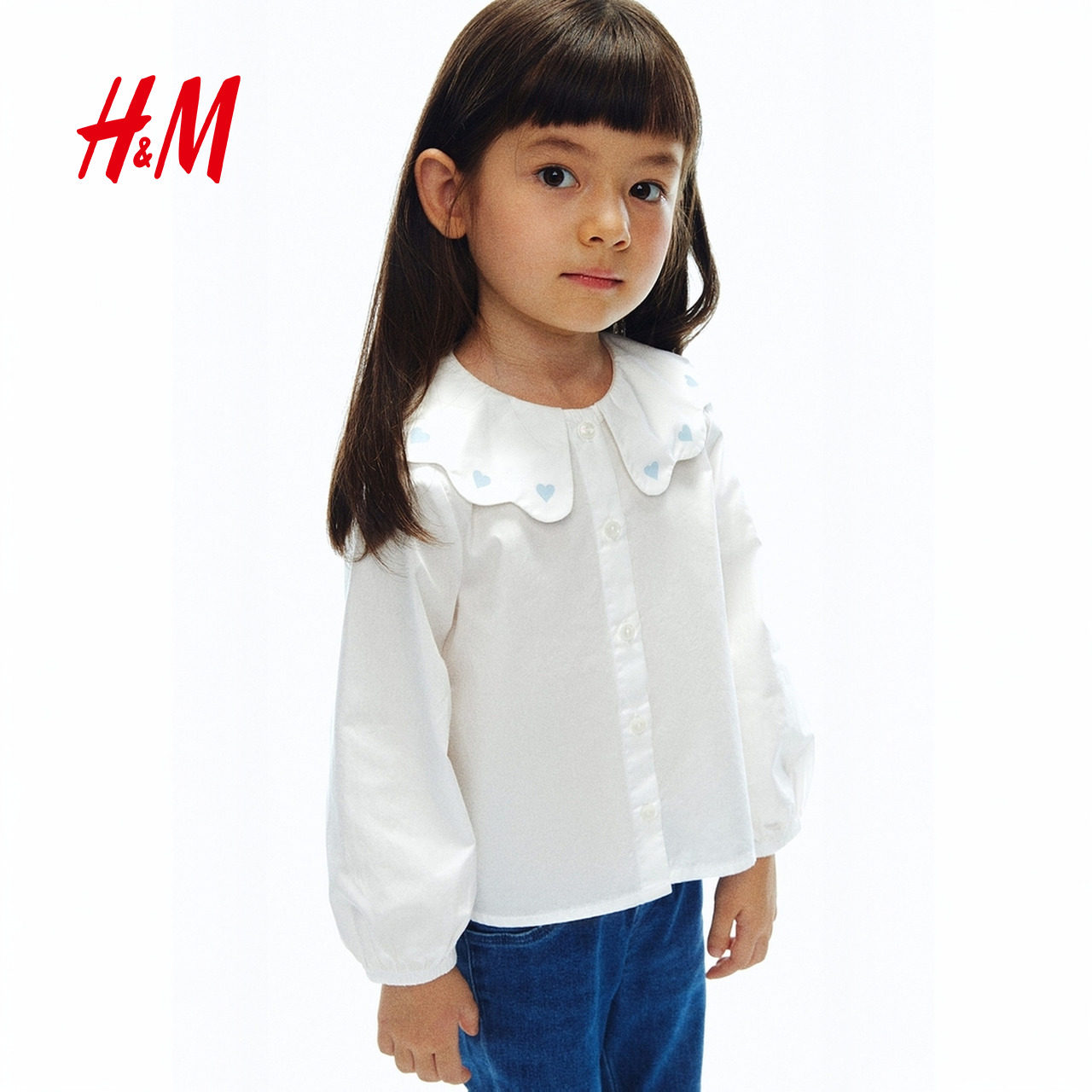HM童装儿童女童衬衫2025冬季新款棉府绸有领衬衣长袖上衣1309741