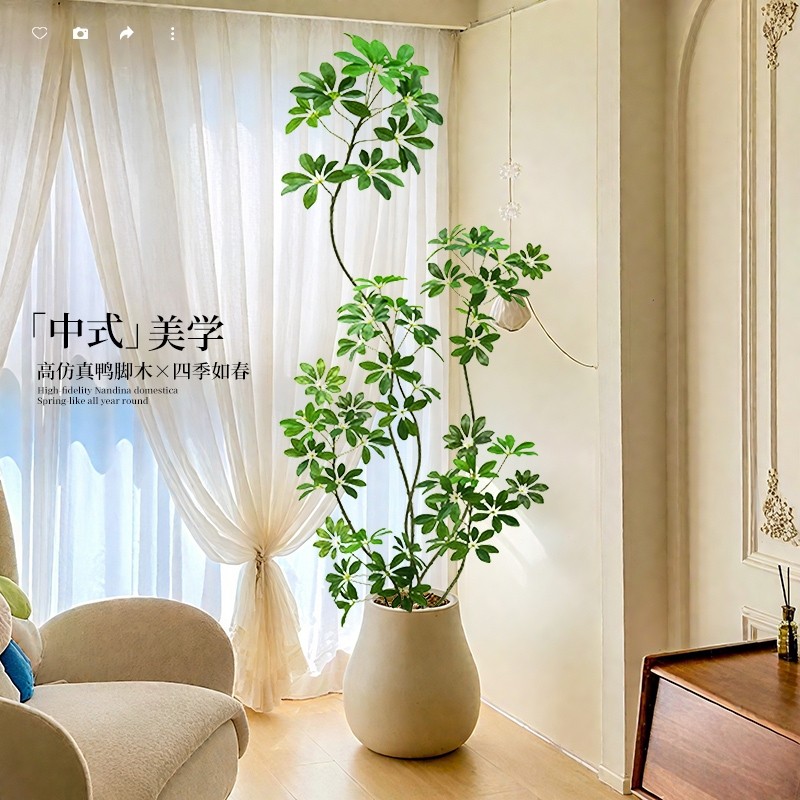 鸭脚木仿真绿植高端轻奢室内客厅电视柜落地摆件仿生植物盆栽假树