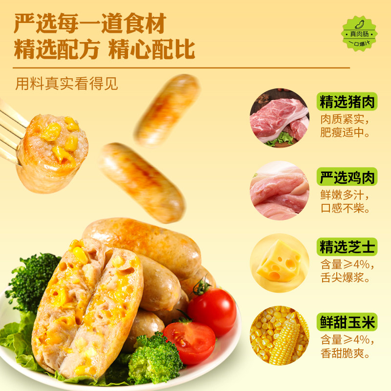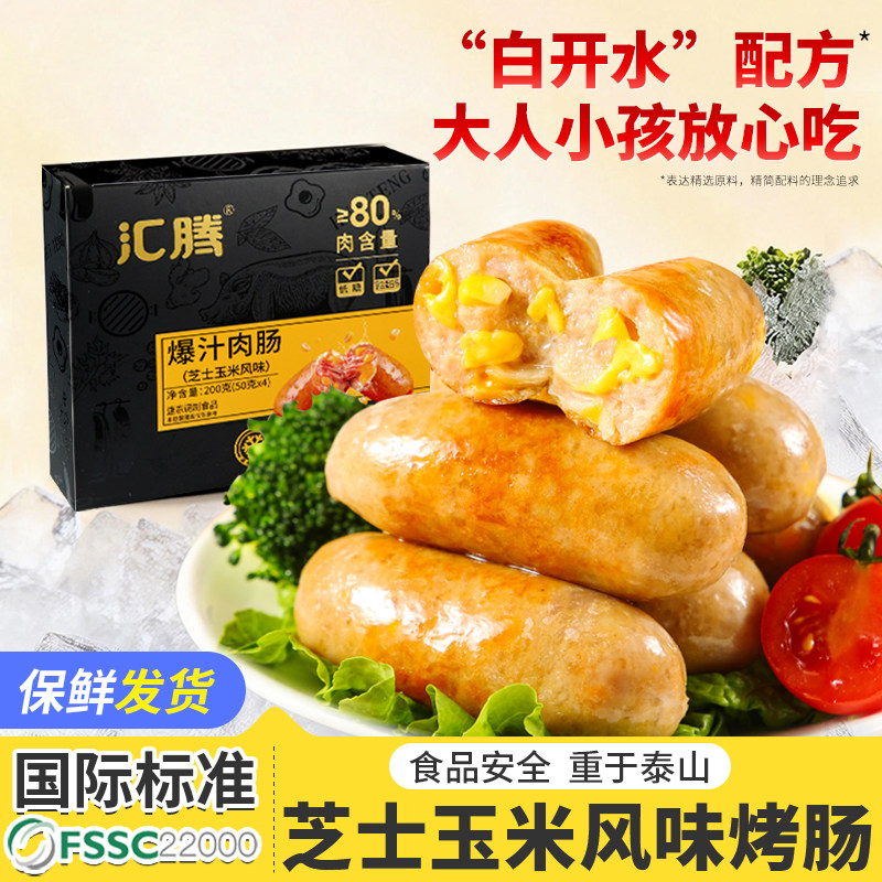 汇腾爆汁肉肠芝士玉米肠脆皮烤肠儿童早餐肠香肠热狗肠爆浆烧烤