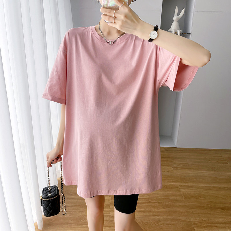 婧麒孕妇装夏季薄款纯棉T恤短袖中长款大码宽松上衣孕期日常穿搭