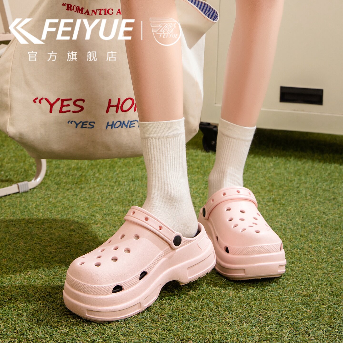 feiyue/飞跃洞洞鞋女鞋2026夏新款户外休闲沙滩鞋厚底增高凉拖鞋
